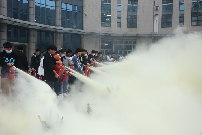 在消防火灾扑救体验现场,消防官兵向师生介绍了灭火器知识以及正确使用灭火器方法、发生火灾后的逃生方法。师生员工积极参与,亲自使用灭火器扑灭火焰,增强了现实体验感。