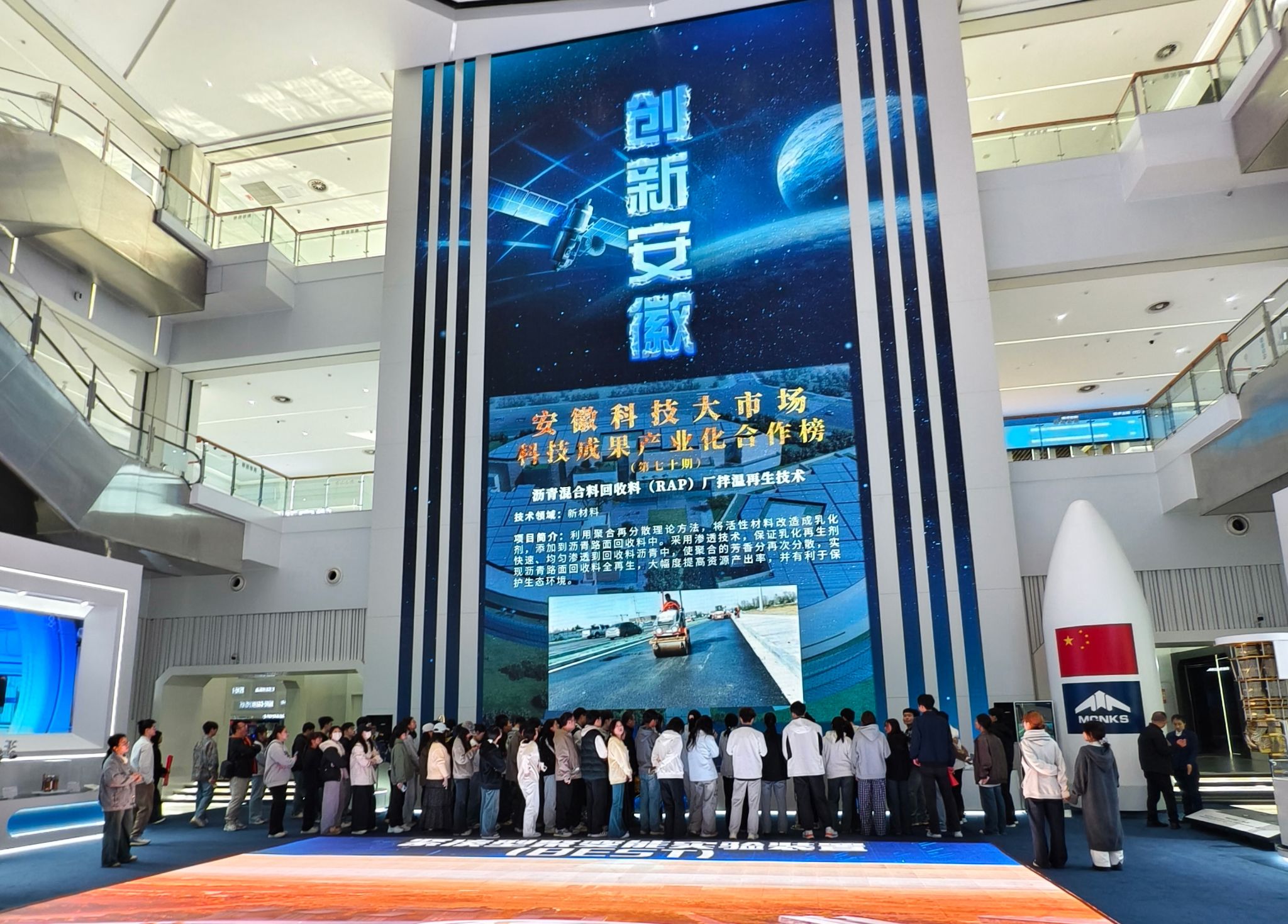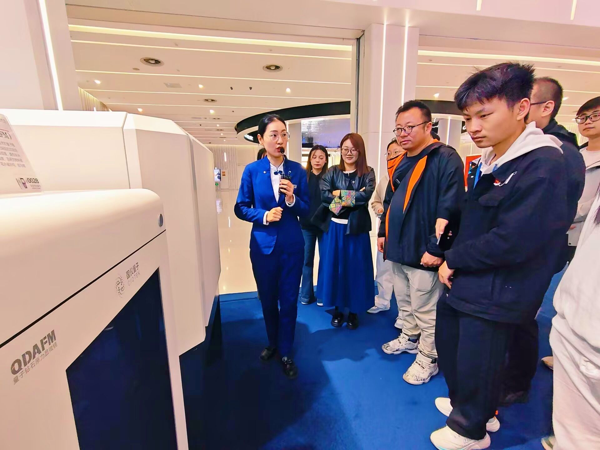 活动伊始,参与师生在馆内智能机器人的引导下,先后参观了“创引擎”“创智慧”“创未来”三大主题展区,深入了解各类创造性科研成果的研发历程与背后故事。随后,在场馆讲解员的带领下,大家近距离观摩了农用无人机、人工心脏、智驾汽车、量子手机等一系列突破性创新成果,直观感受科技创新的蓬勃活力。