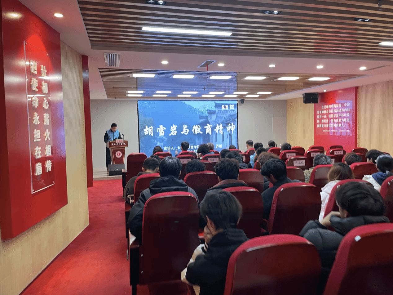 活动分为三大环节,层层递进、环环相扣。首先,安徽大学徽学研究中心副研究员张绪老师作题为《传统徽商文化漫谈》的专题讲座。他以古今徽州地图为引,从地理格局、宗族制度到儒商伦理,系统阐释徽商“贾而好儒、诚信为本、义利兼顾”的精神内核,引导青年学子在历史纵深中感悟中华文化的生命力与时代价值。