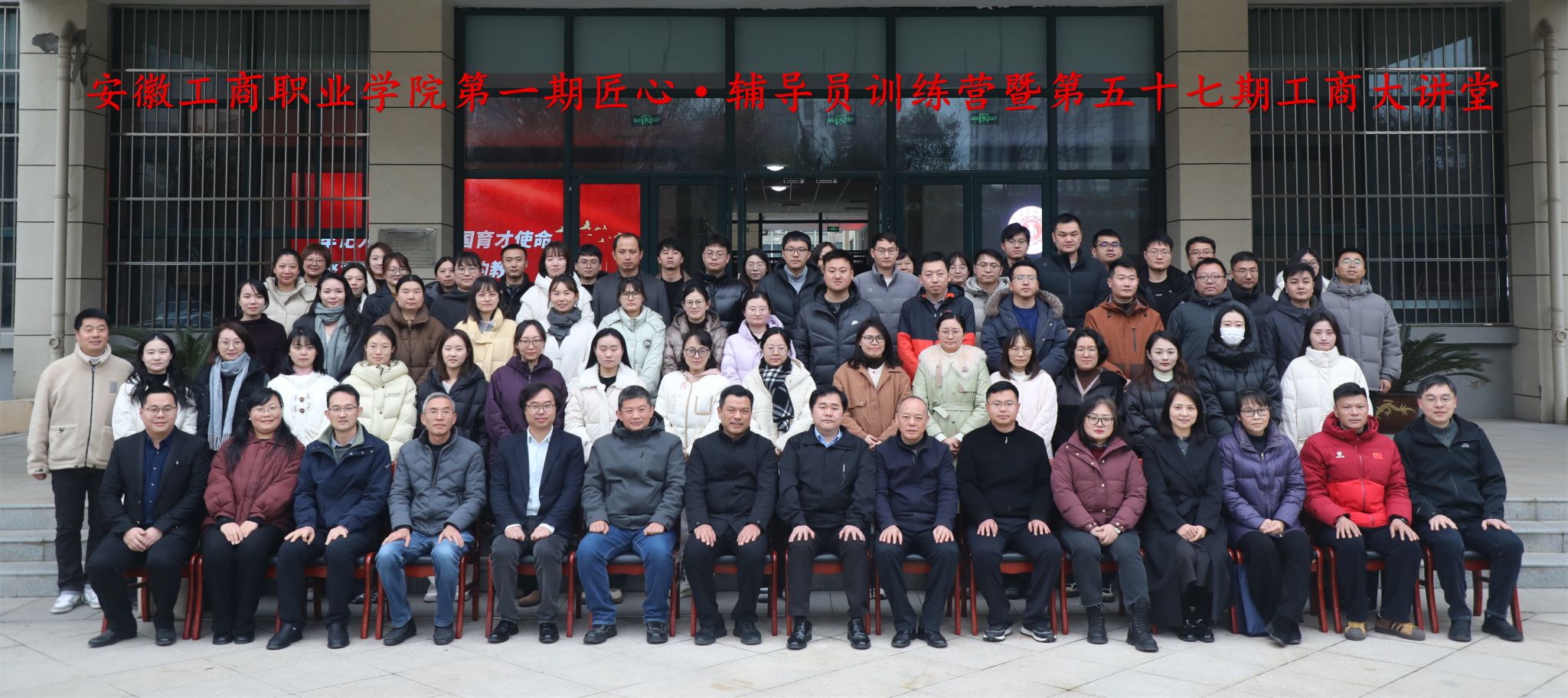 2025年12月24日下午,安徽工商职业学院智慧思政实践教学基地红色报告厅内气氛热烈,学校第一期“匠心·辅导员训练营”暨第五十七期“工商大讲堂”隆重举行。本次活动由教育部“匠心工商”辅导员名师工作室牵头承办,并联合安徽理工大学(合肥校区)、安徽国际商务职业学院、安徽新闻出版职业技术学院共同协办。安徽省教育厅相关处室领导、安徽工商职业学院校领导、四所学校学工部门负责人、部分二级学院党政领导及专职辅导员代表近百人齐聚一堂,围绕辅导员队伍专业化、专家化发展路径,开展深入研讨与交流,共同描绘新时代高职院校思政工作高质量发展新图景。