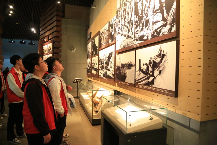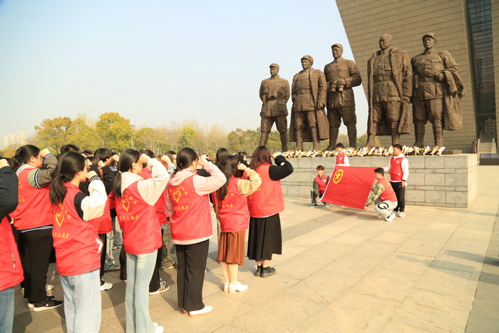 接着全体学生向革命先烈献花并瞻仰革命先烈塑像、向革命先烈默哀,面对鲜艳的中国共产主义青年团团旗重温了入团誓词,流程结束后,全体学生参观了渡江战役纪念馆六大展厅,以及革命先烈的壮烈事迹;观看陈列的枪炮弹药、衣物鞋帽、文件器具等革命烈士生前使用过的物品;感受着声、光、电等现代科技重现“钟山风雨起苍黄,百万雄师过大江”的壮观场景。最后全体学生参观了安徽名人馆,通过瞻仰不同时期不同领域的安徽名人,更加深刻的感知安徽物华天宝、人杰地灵的美好形象。