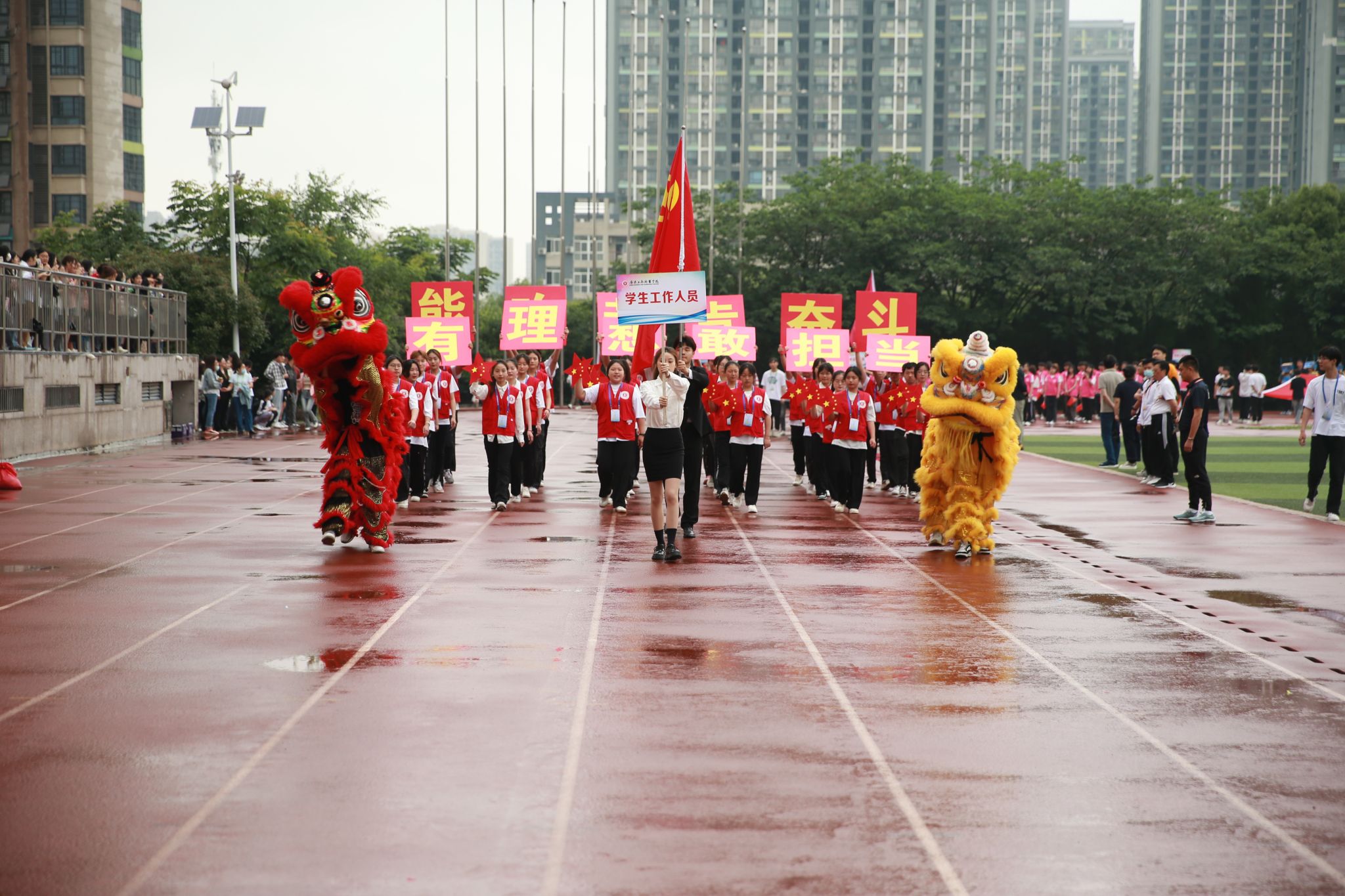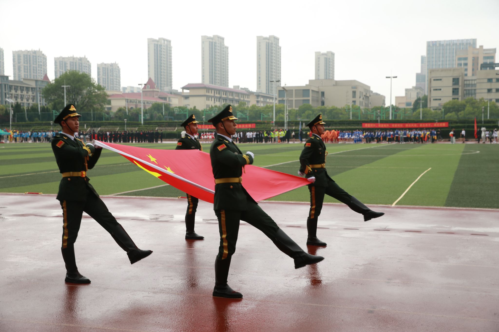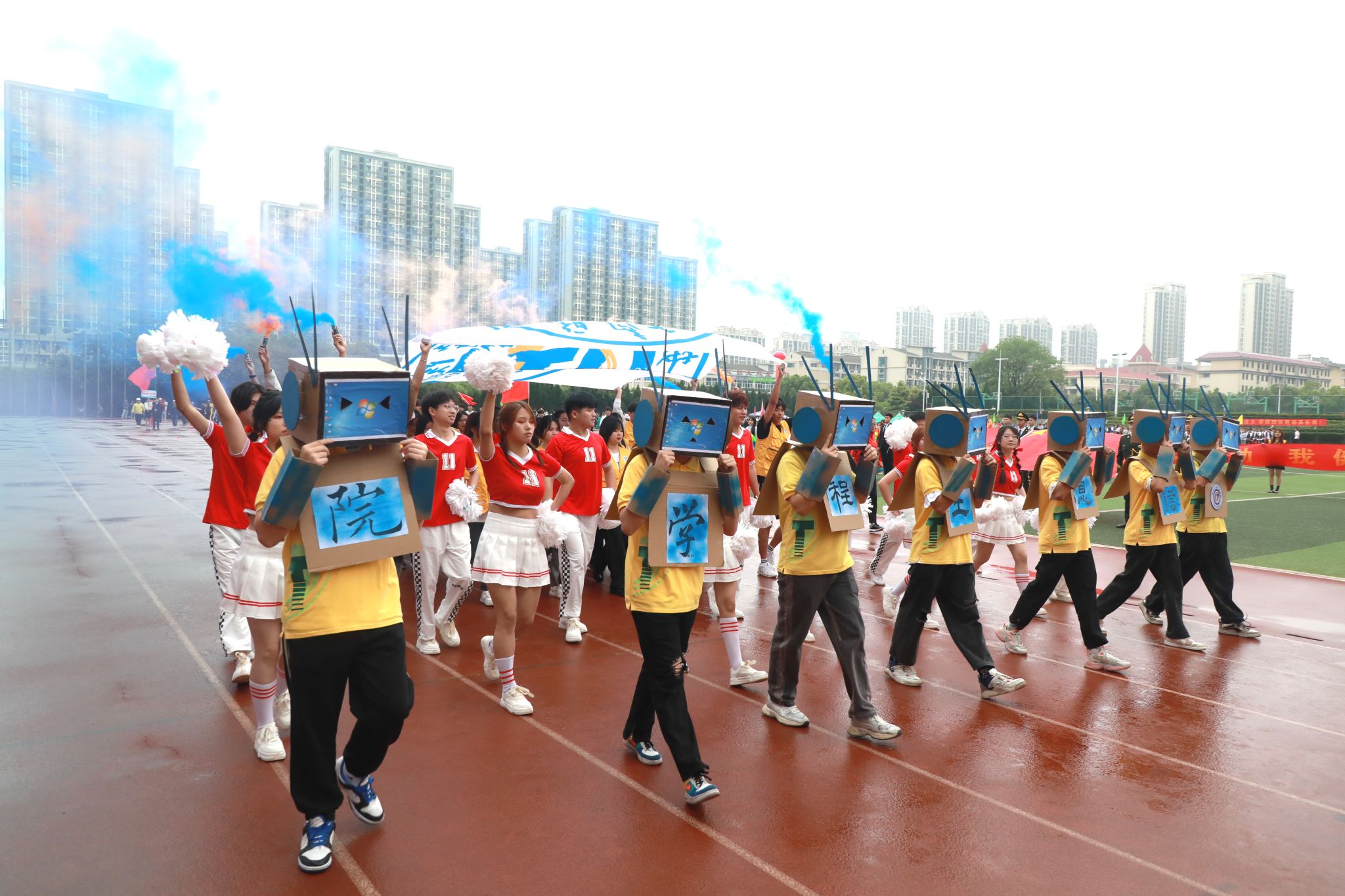 火红的五月,热血的青春,运动场上展英姿,五育并举结硕果。5月17日上午,安徽工商职业学院第十八届田径运动会暨啦啦操比赛在双凤校区运动场拉开帷幕。校领导齐建平、李雪、陈行、胡捍东出席开幕式,各二级学院及部分处室主要负责人等运动会组委会成员在大会主席台就坐,运动员、裁判员、教师及学生代表近3000余人参加了开幕式,胡捍东副校长主持了开幕式。