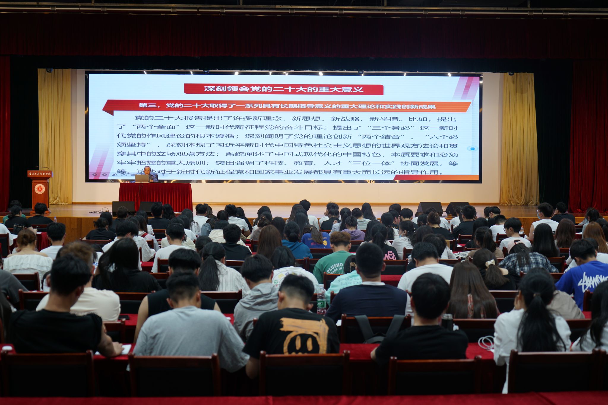 党课指出党的二十大报告主题鲜明、气势恢宏、博大精深,与会师生党员和入党积极分子应持续保持学习贯彻党的二十大精神的高度热情,深刻领会蕴含其中的马克思主义哲学思想,进一步强化理论武装,淬炼政治品格,自觉做党的二十大精神的学习者、宣传者、践行者。随后结合深入学习习近平总书记世界第一大赌场,澳门金沙城中心青年工作的重要论述,强调新时代是中国青年实现梦想的时代,指明了青年工作是党和国家的战略性工作,提出了做好青年工作的主要任务和要求。