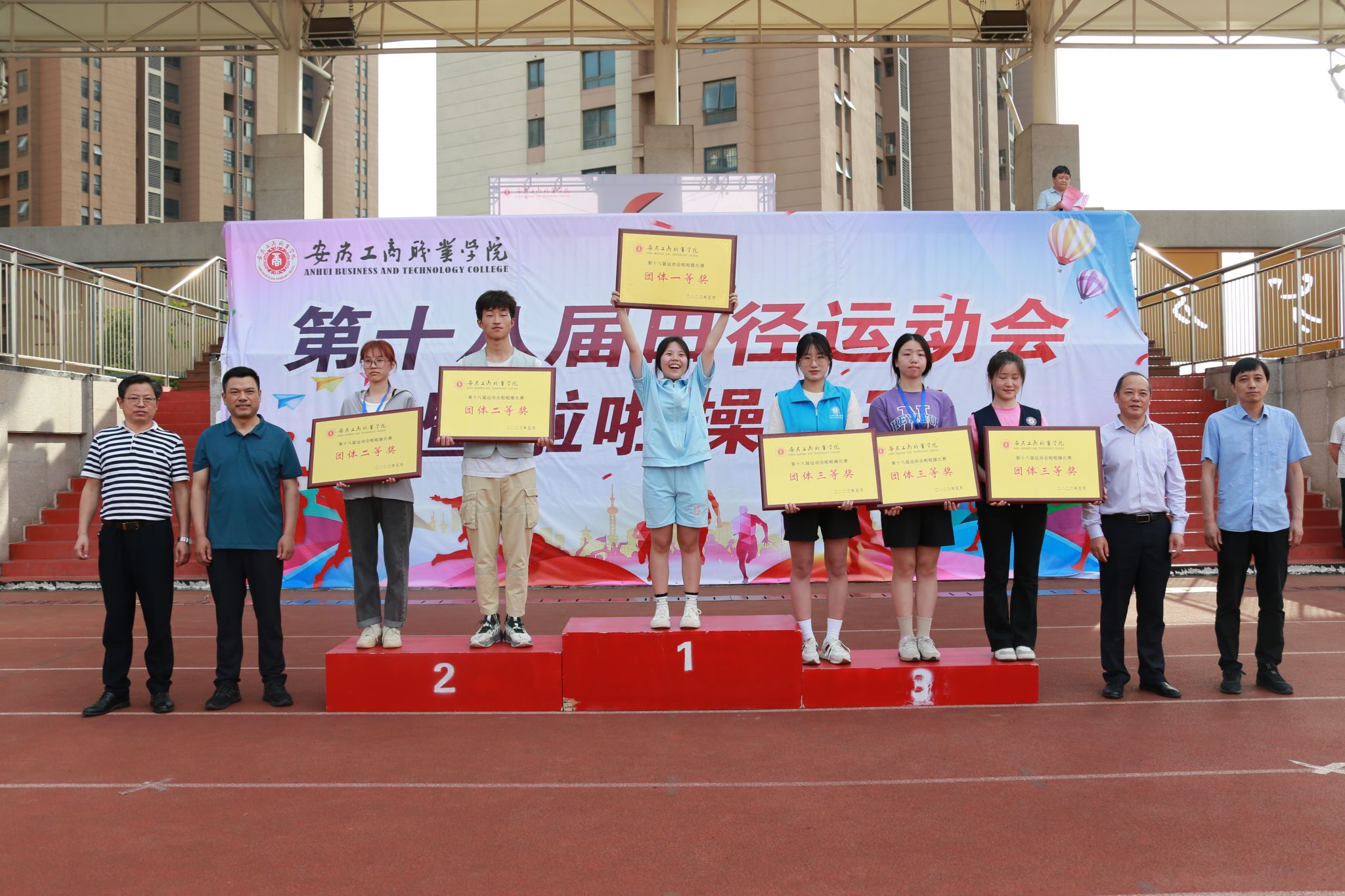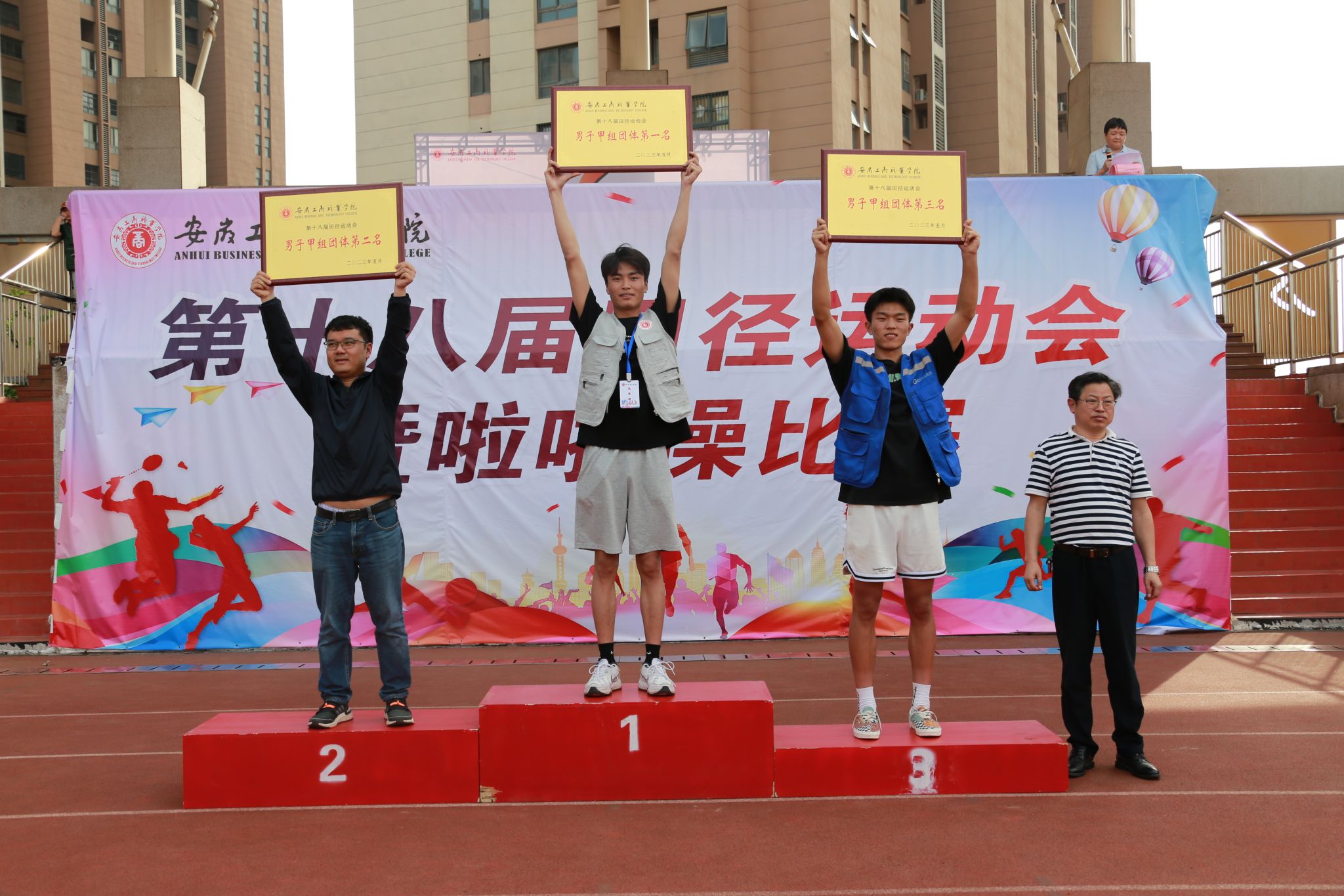 本届田径运动会获得甲组男子团体总分前三名的分别为会计学院、智能制造与汽车学院、经济贸易学院;获得甲组女子团体总分前三名的分别为经济贸易学院、会计学院、智能制造与汽车学院;获得乙组男子团体总分前三名的分别为智能制造与汽车学院、管理学院、信息工程学院和会计学院;获得乙组女子团体总分前三名的分别为管理学院、旅游学院、会计学院;获得丙组团体总分前三名的分别为22健身1班、22健身2班、21健身3班。获得本届啦啦操比赛团体总分第一名的单位为经济贸易学院,团体总分第二名的单位为会计学院、信息工程学院,团体总分第三名的单位分别为管理学院、智能制造与汽车学院、旅游健康学院。获得本届运动会优秀组织奖的单位为智能制造与汽车学院、经济贸易学院、艺术设计学院。