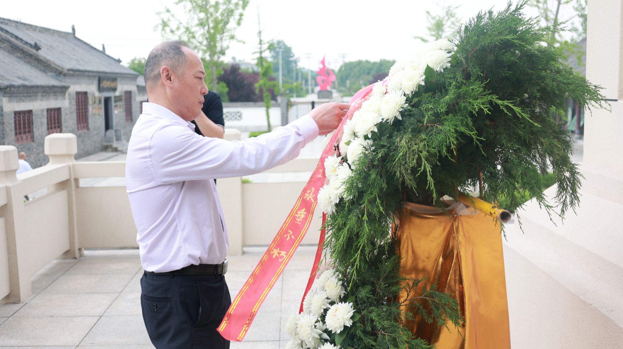 在讲解员的带领下,全体人员首先参观了小甸集特支纪念馆,认真聆听了小甸集特支的成立过程和革命先烈先进事迹,详细了解了中共小甸集特别支部作为安徽省最早的党组织的成立背景和发展历程。通过陈列的珍贵历史资料和物品,身临其境地感受“星星之火”渐成“燎原之势”的光辉奋斗历程。随后,全体人员向革命烈士纪念碑敬献花篮,向长眠于此的革命先烈鞠躬致敬,齐建平带领班子面对鲜红的党旗重温入党誓词。