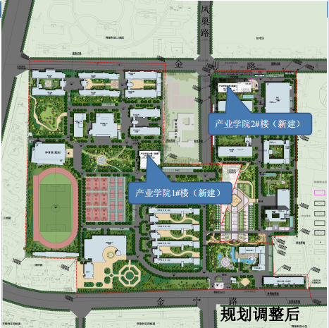 2022年以来,学校领导及后勤基建人员多次去长丰县水湖镇办理规划方案调整事宜,规划总平面图及规划方案文本等资料经过十几次修改完善于2023年6月19日完成审批工作。最终确定拟新建产教融合实训基地1#楼, 地上6层,建筑高度23.65米,总建筑面积10679㎡; 拟新建产教融合实训基地(产业学院)2#楼,地上10层,地下1层,建筑高度37.70米,总建筑面积为20270㎡。