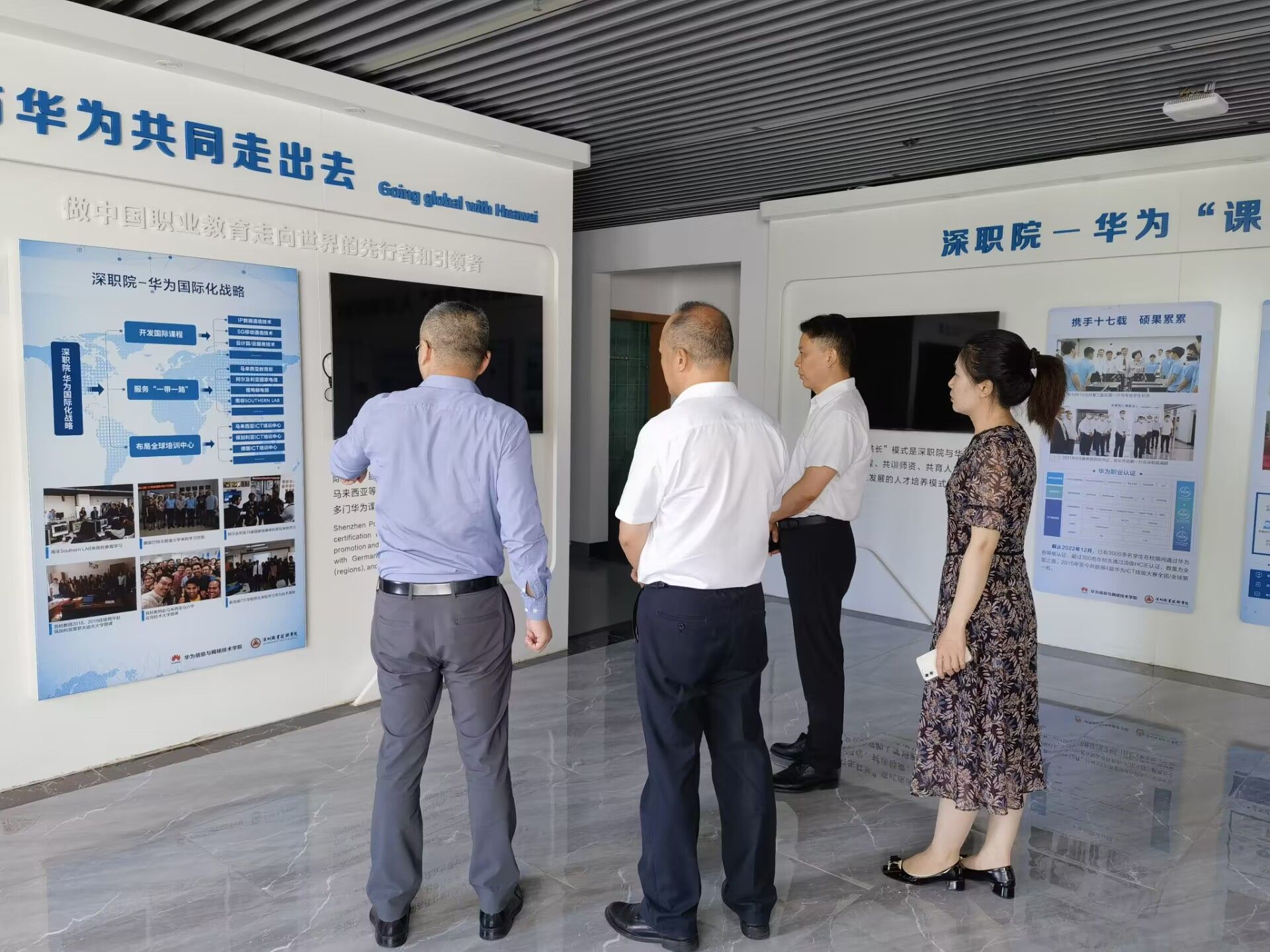 随后,深圳职业技术学院有关领导陪同齐建平一行实地参观了华为ICT学院和比亚迪应用技术学院,双方就深圳职业技术学院在职业教育产教融合、社会服务、校企协同发展、人才培养模式改革等方面的成果和经验进行了深入交流与探讨。