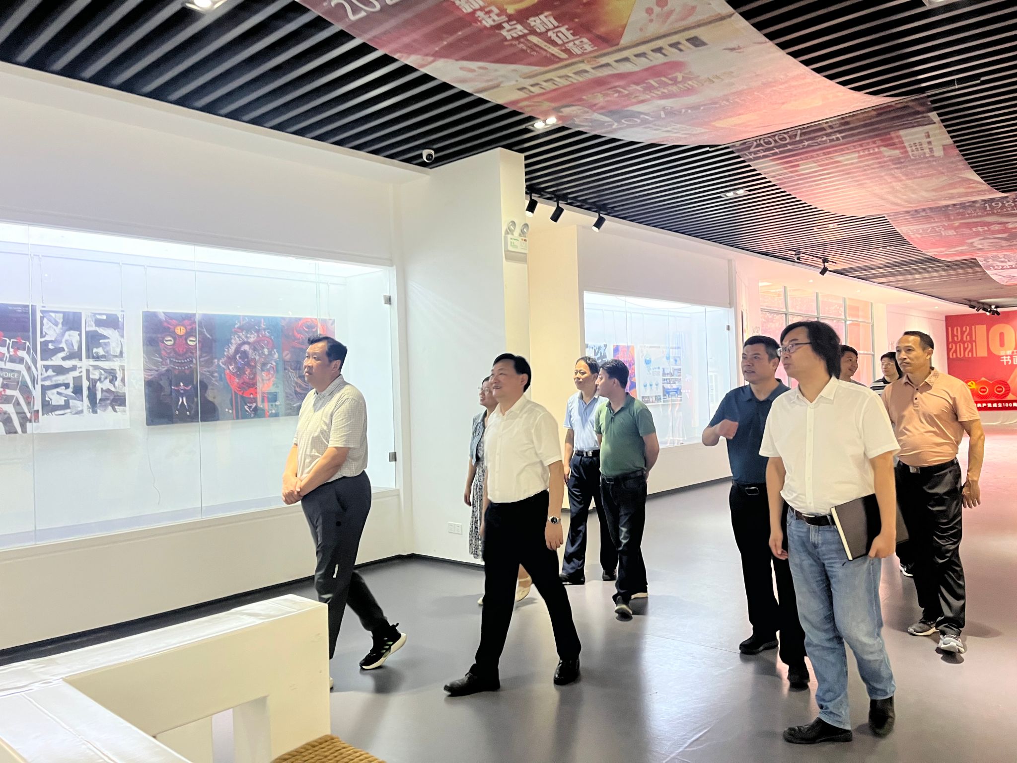 第八届安徽美术大展·艺术设计展(合肥展)于9月8日在安徽工商职业学院庐阳校区合瓦·VISION艺术馆正式开展。展览前夕,党委副书记、院长李雪,党委副书记陈行,合肥市庐阳区杏林街道党工委书记石际及杏林街道领导童俊、韩休华、陈勇等提前参观了艺术设计展。艺术设计学院党政负责人孔成、魏芬、张乐陪同参观。