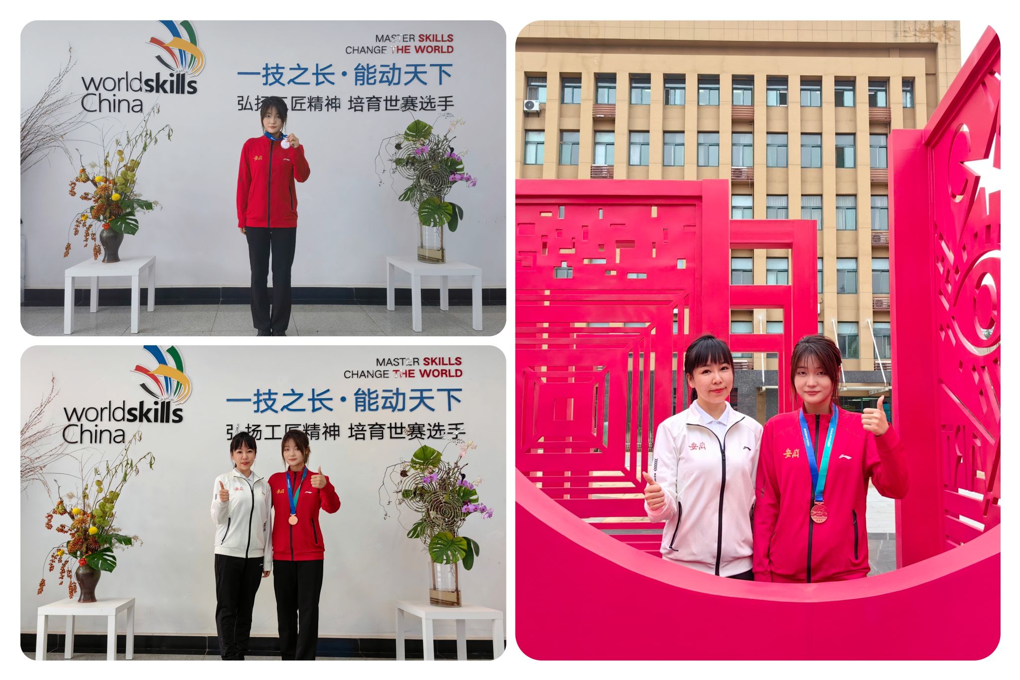 荣誉的取得,离不开学校对技能人才培养的高度重视,离不开学校领导,艺术设计学院花艺赛项省级基地团队,教练组韦鸾鸾、侯一凡对选手的精心培养,离不开翟雨娟同学技能成才、技能报国的坚定信念。