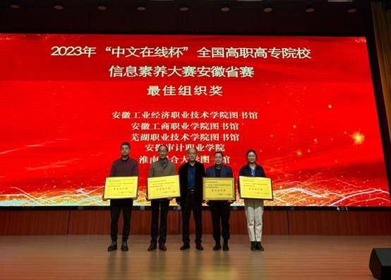 金风送爽秋意浓,丹桂飘香喜报迎。11月10日,由教育部高等学校图书情报工作指导委员会高职高专分委会指导,安徽省高等学校图书情报工作委员会、安徽高等学校数字图书馆主办,安徽工业经济职业技术学院承办,湖北中文在线数字出版有限公司和北京智信数图科技有限公司共同协办的“中文在线杯”2023年全国高职院校信息素养大赛安徽省赛决赛落下帷幕。