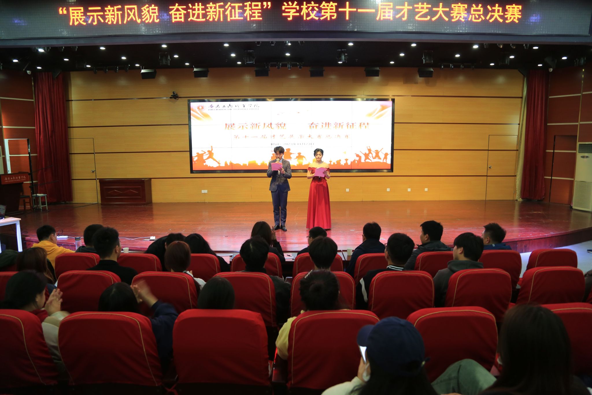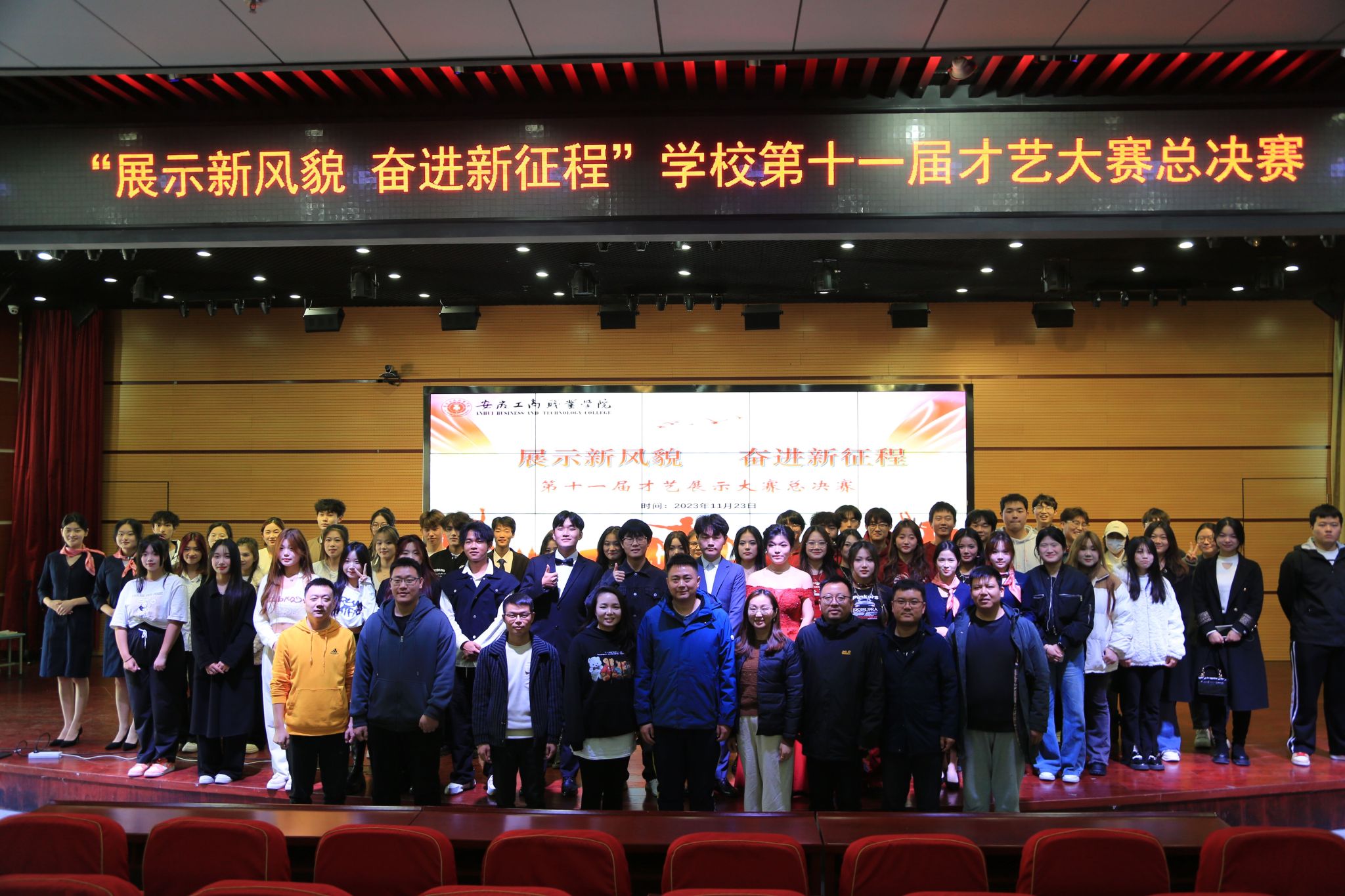为丰富大学生课余文化生活,营造和谐向上的校园文化氛围。11月23日中午,“展示新风貌 奋进新征程”学校第十一届才艺大赛在学术报告厅成功举办,全校共300多名师生参加本次活动。