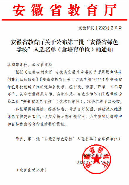 近日,安徽省教育厅公布第二批安徽省绿色学校名单,世界第一大赌场,澳门金沙城中心:入选安徽省绿色学校,全省共19所高校获得此次省级绿色学校称号。