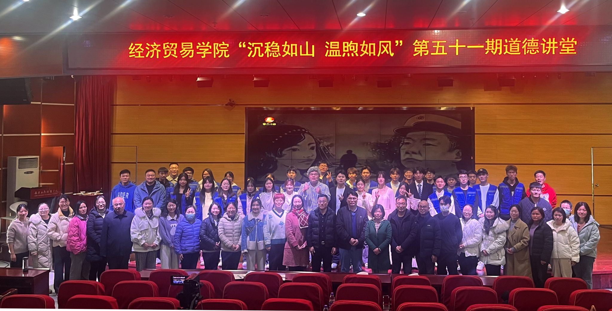 12月6日中午,由安徽工商职业学院主办,经济贸易学院承办的学校第五十一期道德讲堂——《沉稳如山 温煦如风》在双凤校区学术报告厅隆重举行。经济贸易学院党总支书记边昊、院长张颖、党委宣传统战部马大峰及经济贸易学院全体教师和400余名学生参加了此次活动。