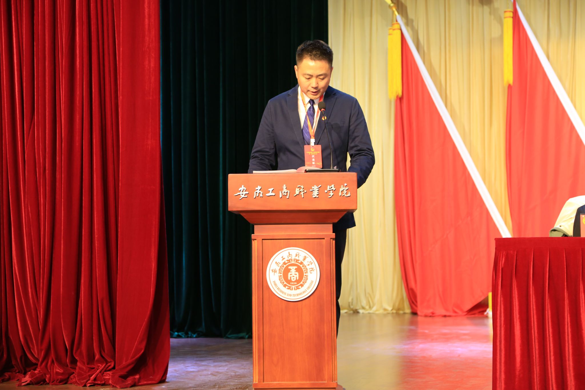 校团委副书记童乐代表共青团安徽工商职业学院委员作了题为《奋楫杨帆 挺膺担当,为建设更高层次、更高水平的中国特色高职院校贡献青春力量》的工作报告,张玉龙同学代表安徽工商职业学院学生委员会作了题为《高举旗帜跟党走,砥厉奋进向未来,让青春在强国建设、民族复兴新征程上绽放光彩》的工作报告。