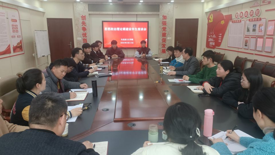 为扎实推进新时代思政课建设,提升思政课教学的针对性和实效性,3月13日下午,学院在明德楼二楼会议室召开全校思想政治理论课建设学生座谈会,调研学校思政课教学情况,广泛听取征求青年学生意见建议。校党委委员、副院长陈章奇出席座谈会,各二级学院12名学生代表及部分思政课教师参加座谈会。