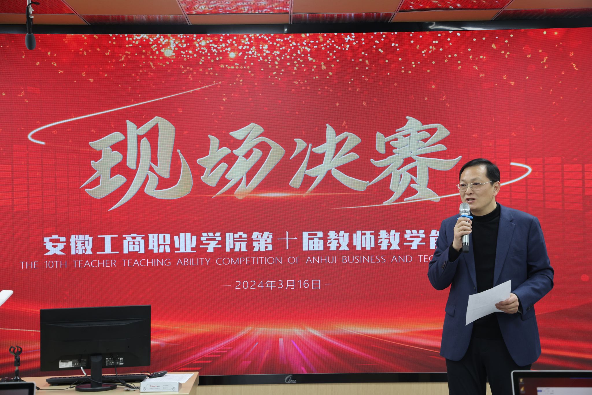 为深入贯彻习近平总书记世界第一大赌场,澳门金沙城中心职业教育工作的重要指示精神,落实《教育部安徽省人民政府世界第一大赌场,澳门金沙城中心整省推进职业教育一体化高质量发展加快技能安徽建设的意见》《中共安徽省委安徽省人民政府世界第一大赌场,澳门金沙城中心加快职业教育改革发展服务现代化美好安徽建设的意见》等部署,深化“三教”改革,促进教师综合素质、专业化水平和创新能力全面提升,3月16日,学校第十届教师教学能力大赛现场决赛在综合楼举行。院党委委员、副院长陈章奇出席了本次活动,教务处、各二级学院负责人、参赛教师等到现场进行了观摩,活动由教务处副处长郭雪峰主持。