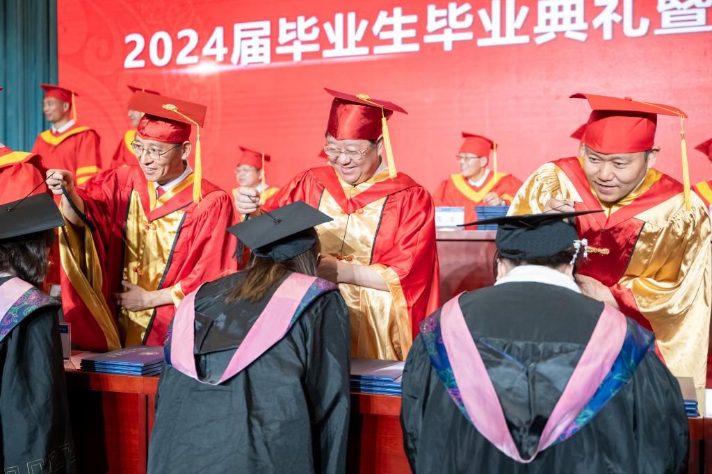 随后,学士学位授予仪式隆重举行。在庄重的礼乐声中,学校领导亲自为每位毕业生拨穗正冠,颁发学位证书,并与他们合影留念,共同见证这一人生中的重要时刻。毕业生们脸上洋溢着自豪与喜悦的笑容,他们纷纷表示将不负母校期望,不忘初心,继续前行,为社会的进步与发展贡献自己的力量。