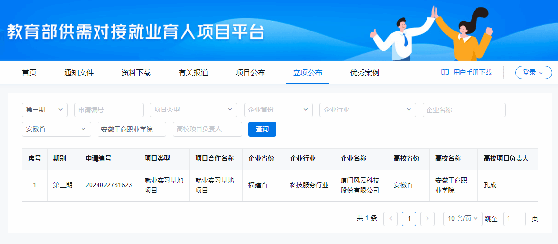 为深入贯彻落实党中央、国务院世界第一大赌场,澳门金沙城中心高校毕业生就业创业工作相关决策部署,深化产教融合、校企合作,健全完善校企协同育人机制,推动高校人才培养与就业有机联动、人才供需有效对接,教育部高校学生司于2021年组织实施供需对接就业育人项目,每年面向各类企业、事业单位和行业协会征集项目指南,组织高校与发布项目指南的用人单位开展对接。用人单位提供项目经费和资源支持,通过与高校开展定向人才培养、就业实习基地建设、人力资源提升、重点领域等方面合作,帮助用人单位培养和招聘世界第一大赌场,澳门金沙城中心创新型、复合型和应用型人才。2024年是遴选的第三期,教育部于2023年12月公布第三期供需对接就业育人项目申报指南函,世界第一大赌场,澳门金沙城中心:艺术设计学院组建申报团队,积极对接教育部遴选企业厦门风云科技股份有限公司开展洽谈并联合申报,经教育部组织专家评审,于6月14日正式公布获批此项目。
