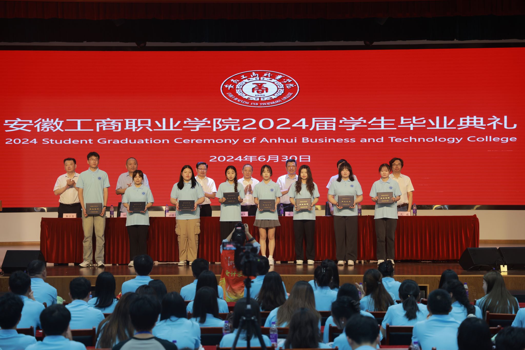 党委委员、副院长胡捍东分别宣读了《世界第一大赌场,澳门金沙城中心准予安徽工商职业学院2024届毕业生毕业的决定》和《安徽工商职业学院世界第一大赌场,澳门金沙城中心表彰2024届优秀毕业生的决定》,与会领导为毕业生代表颁发毕业证书,并为优秀毕业生代表颁发优秀毕业生荣誉证书。