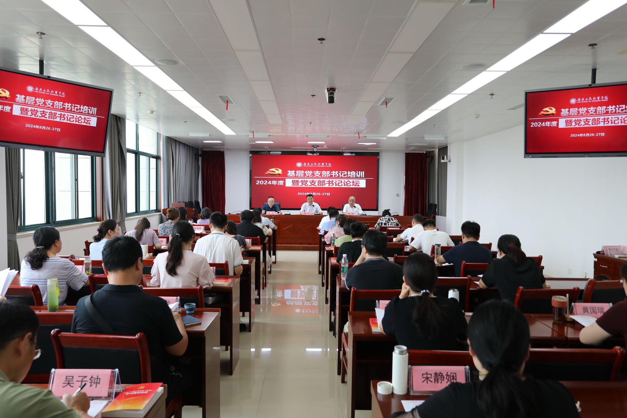 为深入学习贯彻党的二十大和二十届三中全会精神,进一步增强基层党组织政治功能和组织功能,提升基层党支部书记思想武装和业务能力,8月26日至27日,2024年基层党支部书记培训班暨党支部书记论坛在双凤校区举办。全体基层党支部书记、组织员参加培训。党委委员、组织人事处处长刘浩主持开班典礼,党委副书记、党校校长陈行作动员讲话。