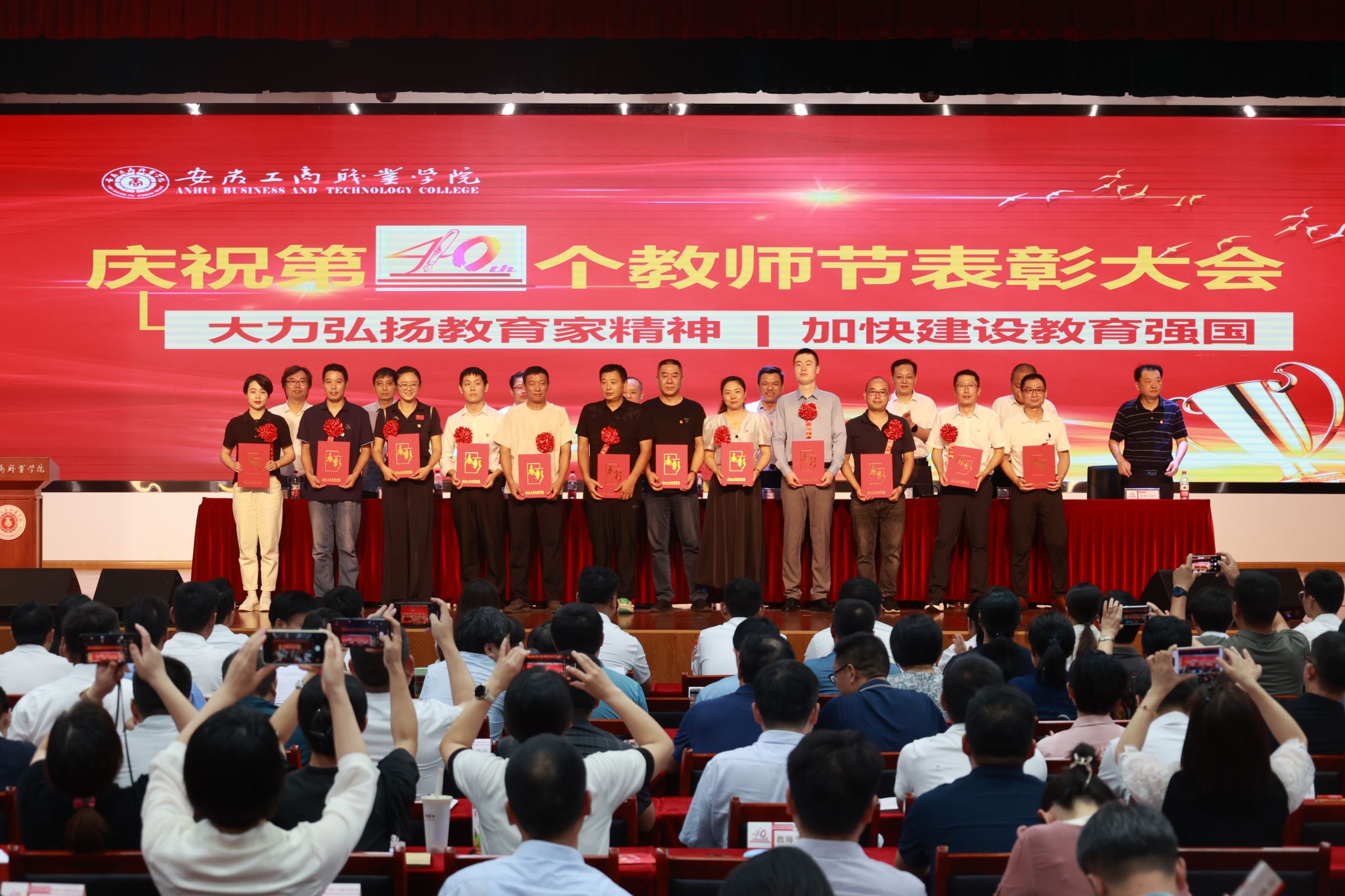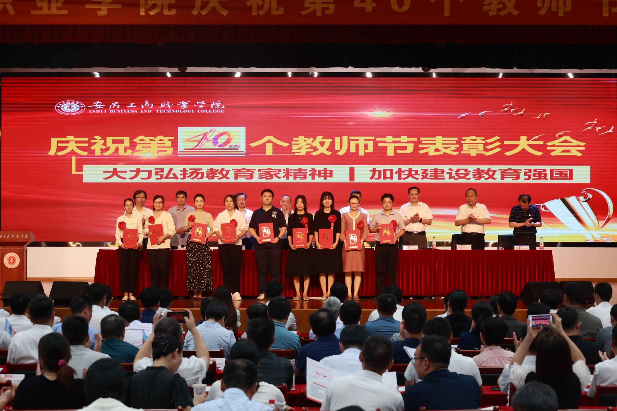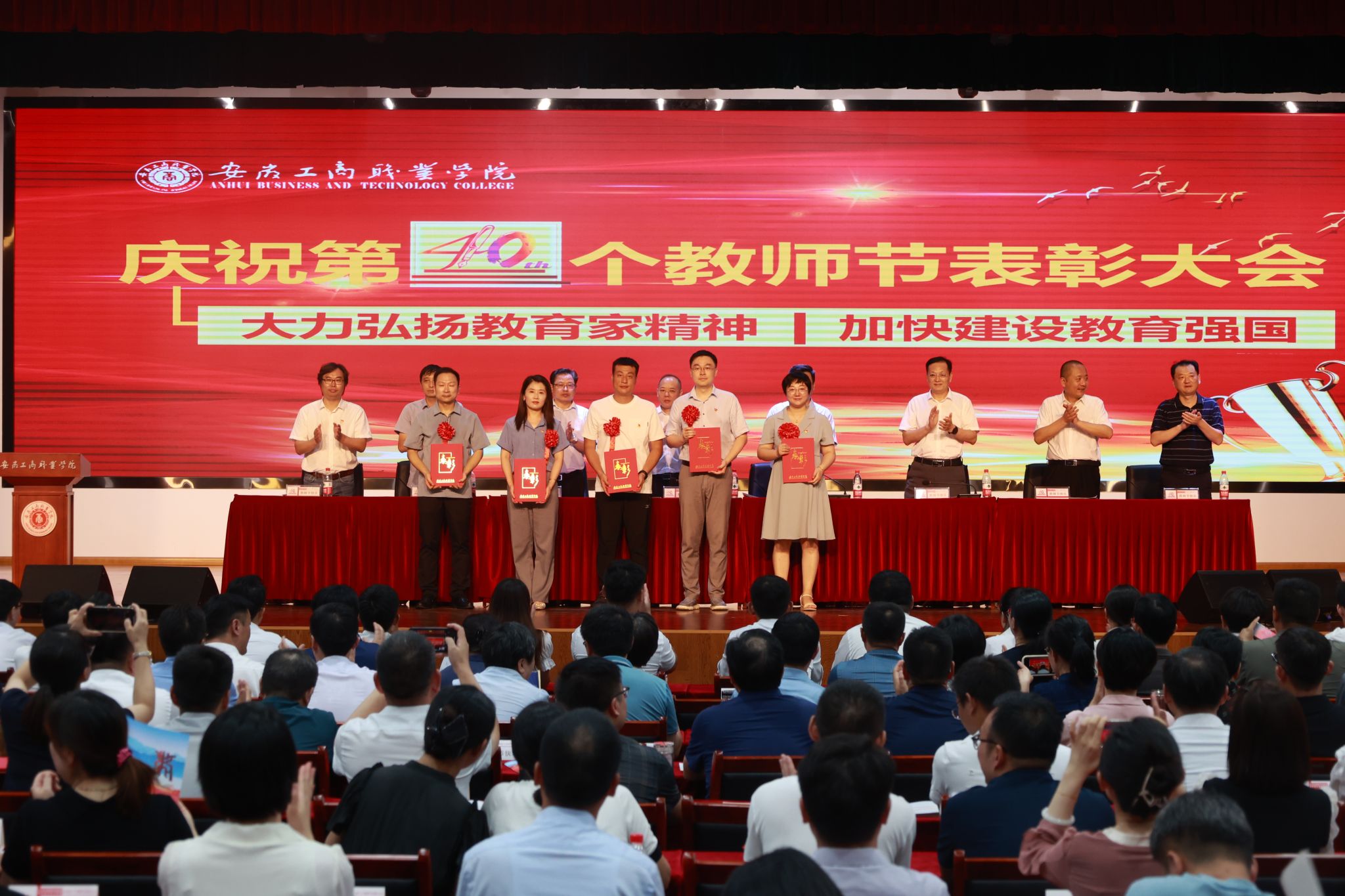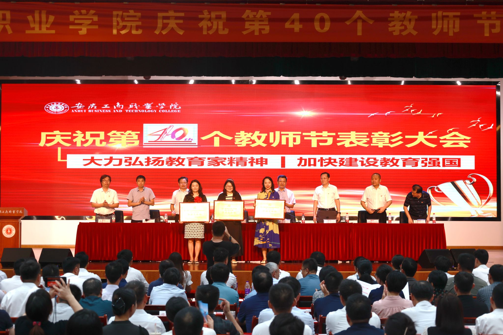 9月10日下午,学校在双凤校区大学生活动中心举行“大力弘扬教育家精神,加快建设教育强国”----安徽工商职业学院庆祝第40个教师节表彰大会。校党政领导班子、全体教职工和部分学生代表参加大会,大会由校党委副书记陈行主持。