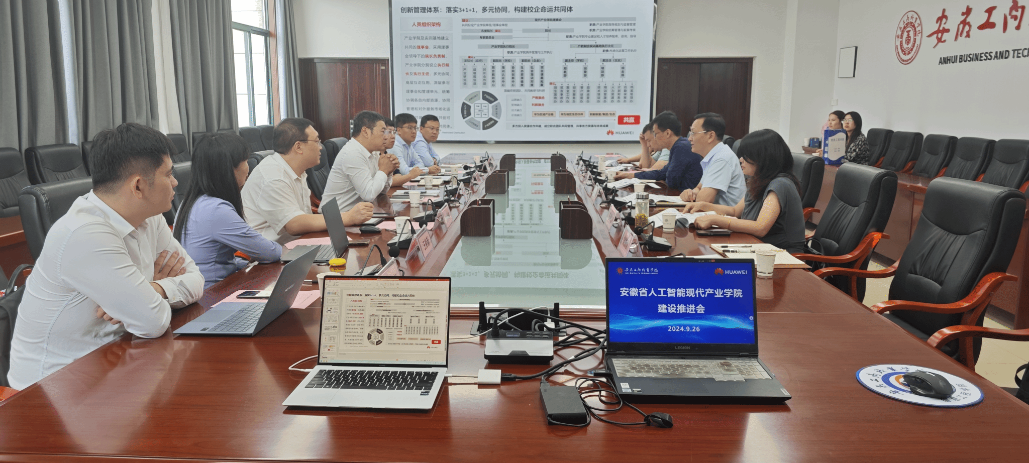 为了进一步深化校企合作,加快推进安徽省人工智能现代产业学院的建设进程。9月26日下午于综合楼第三会议室召开了安徽省人工智能现代产业学院建设推进会。华为全球公共事业军团副总裁李声阳一行七人参与会议。安徽工商职业学院党委委员、副院长陈章奇主持会议,信息工程学院相关老师参与会议。
