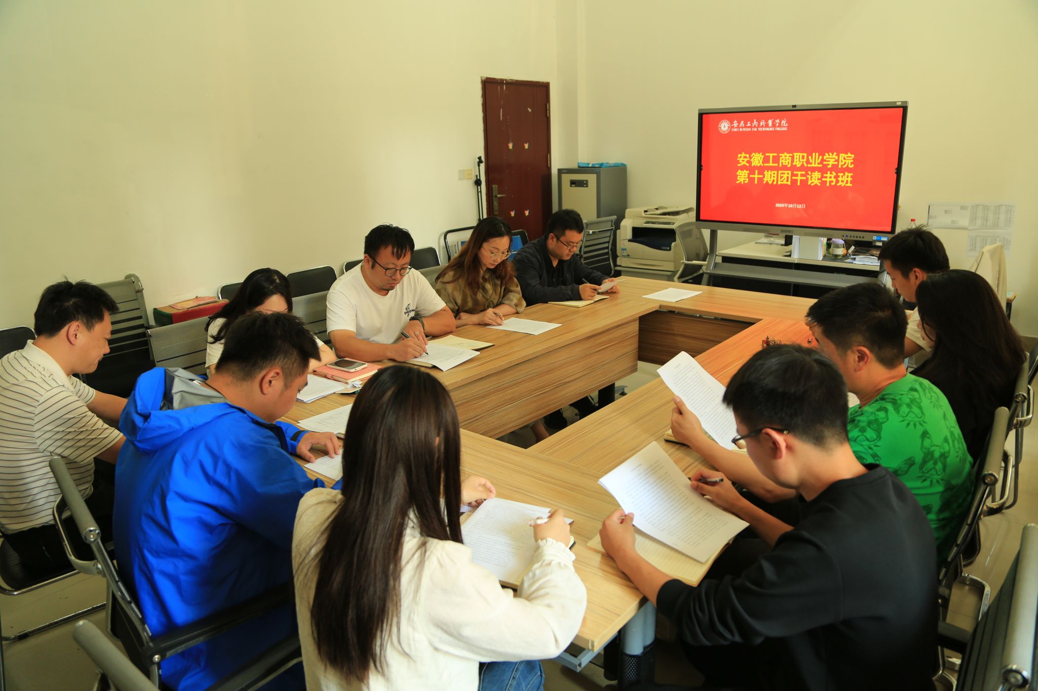 为深入学习贯彻全国教育大会精神,教育广大高校教师要以新时代高素质技术技能人才的培养为重要使命,扎实推动教育强国建设。10月12日中午,安徽工商职业学院第十期团干读书班在团委会议室顺利举行。各二级学院团总支书记及团委老师参加学习,校团委副书记童乐主持会议。