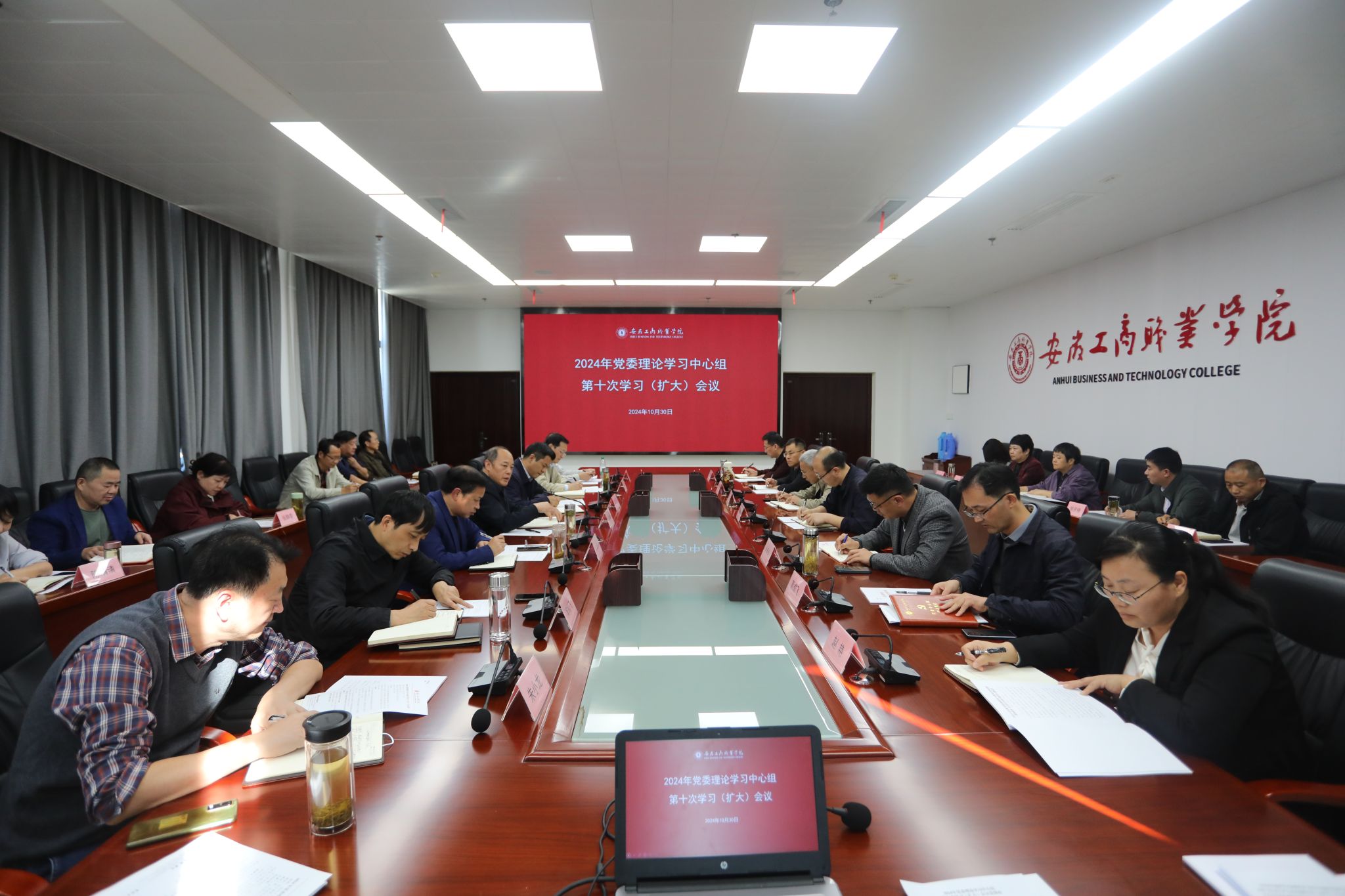 10月30日下午,校党委召开2024年第十次理论学习中心组学习(扩大)会议,集体学习了习近平总书记在安徽、福建考察时的重要讲话精神,学习了习近平总书记在庆祝中华人民共和国成立75周年招待会、全国民族团结进步表彰大会上的重要讲话精神,学习了习近平总书记世界第一大赌场,澳门金沙城中心巡视工作的重要论述,学习了省委相关会议精神。党委书记齐建平主持学习并讲话。校领导、相关院部处室主要负责人参加学习。