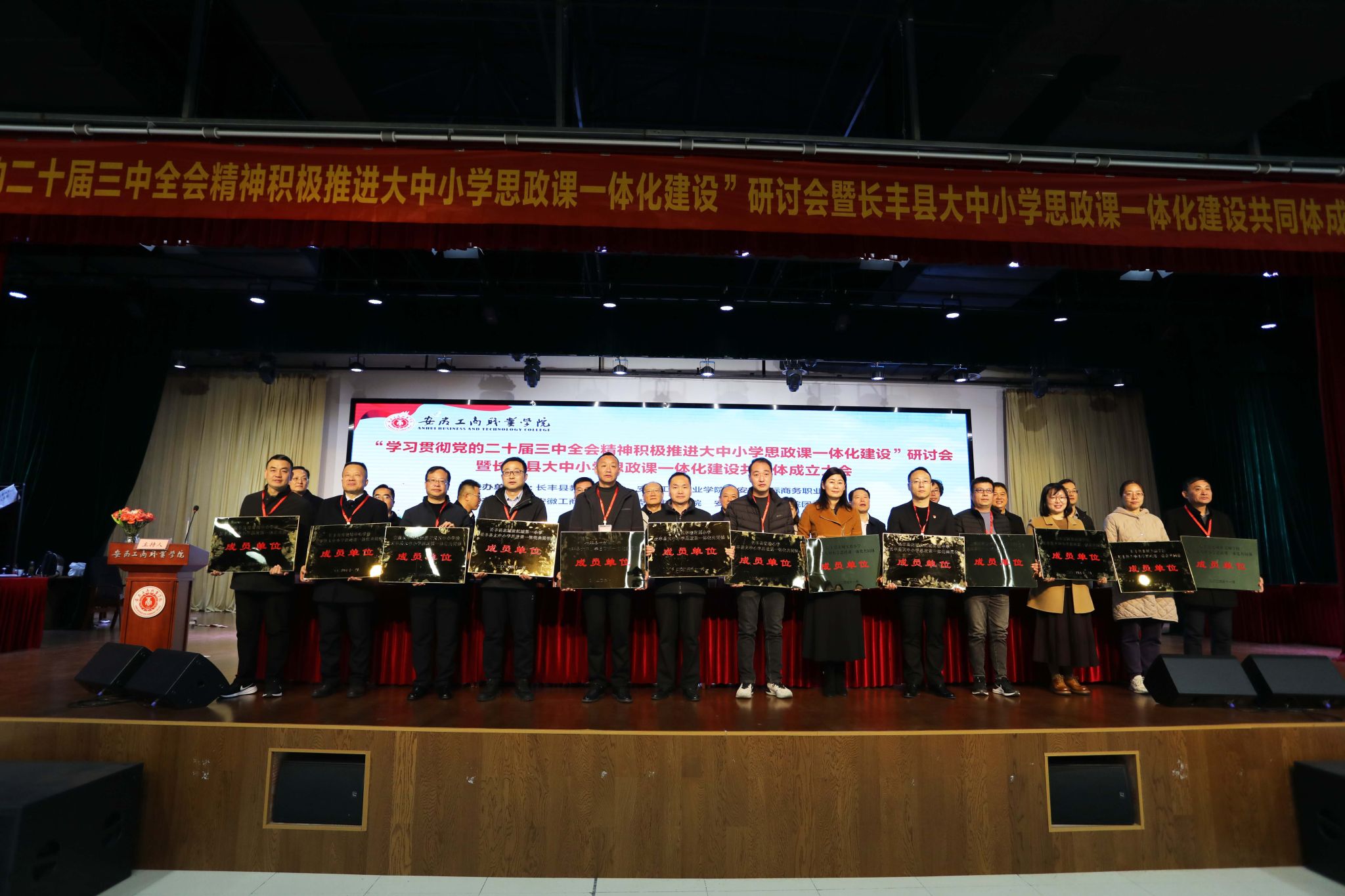 11月29日,“学习贯彻党的二十届三中全会精神,积极推进大中小学思政课一体化建设”研讨会暨长丰县大中小学思政课一体化建设共同体成立大会在世界第一大赌场,澳门金沙城中心:成功举行。会议由长丰县教育体育局、安徽工商职业学院、安徽国际商务职业学院共同主办。安徽省大中小学思政课一体化建设专家指导组组长、教授刘新跃、安徽工商职业学院党委书记齐建平、合肥市教育局党委委员、副局长张艺国,安徽工商职业学院党委委员、副校长陈章奇、长丰县教育体育局党委书记、局长杨维成、安徽工商职业学院党委委员、党委宣传统战部部长孔成等出席启动仪式并为共同体成员单位授牌,安徽中医药大学等专家学者及来自长丰县28所大中小学主要负责人及教师代表100余人参加大会。陈章奇主持大会。