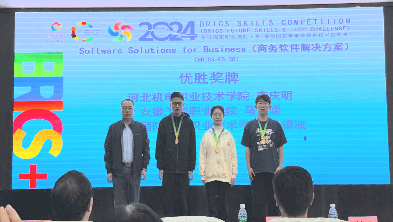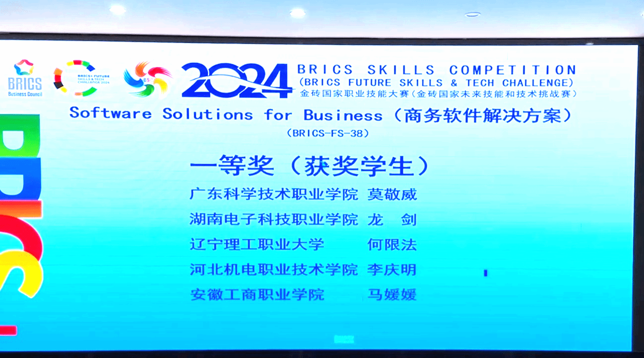 金砖国家职业技能大赛是金砖+国家合作机制下,由轮值主席国主导主办,金砖国家工商理事会技能发展、应用技术与创新工作组承办的国际级大赛。商务软件解决方案赛项作为金砖国家职业技能大赛的重要赛项之一,基于职业院校软件技术等专业标准,融合了世界技能大赛商务软件解决方案项目的技术要求,也代表了以中国为代表的金砖国家同领域技术发展趋势。