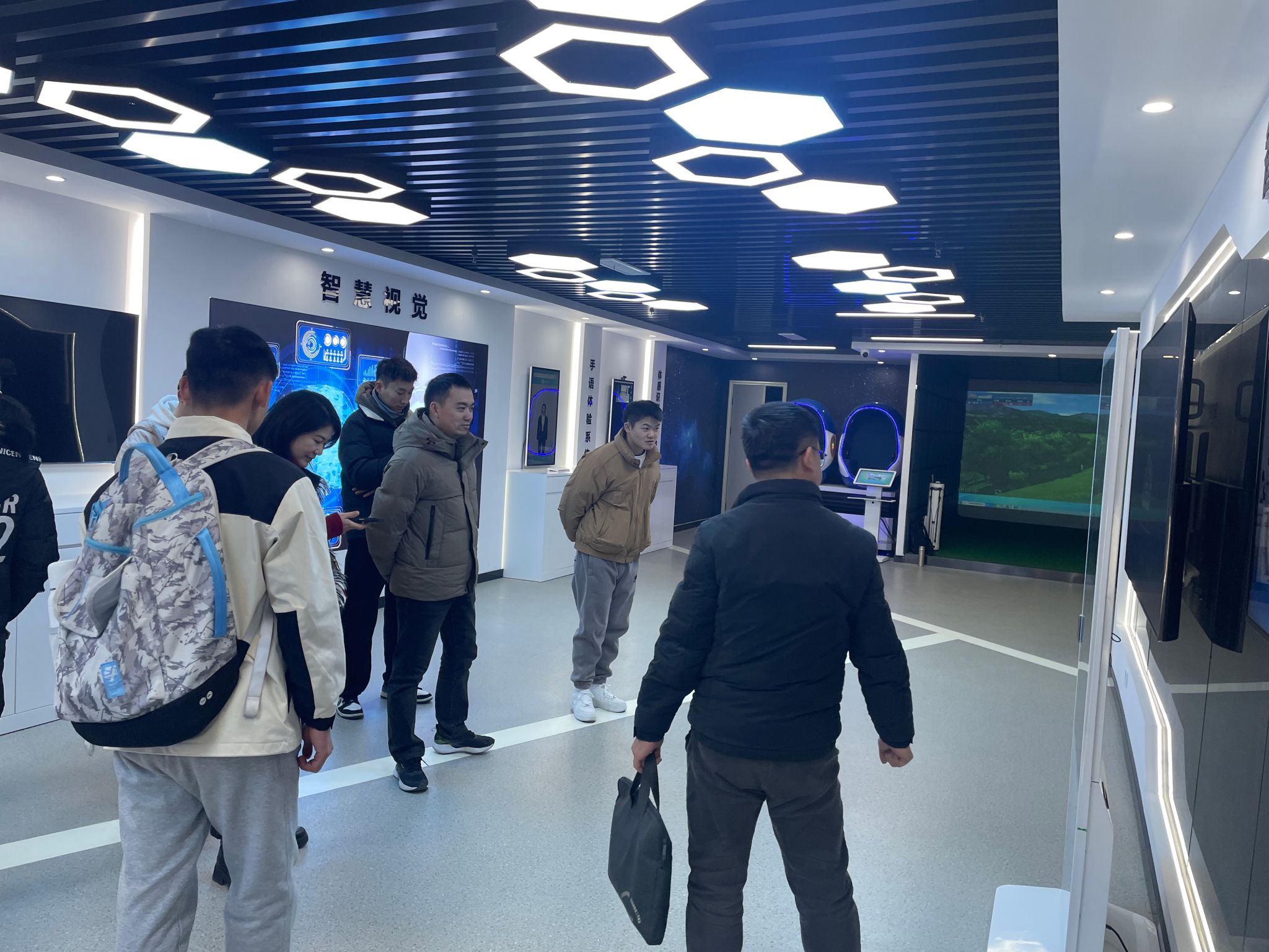 交流会结束后,同学们一同参观了安徽工商职业学院人工智能体验中心。同学们积极体验了展厅内的各种智能设备,感受科技的魅力。