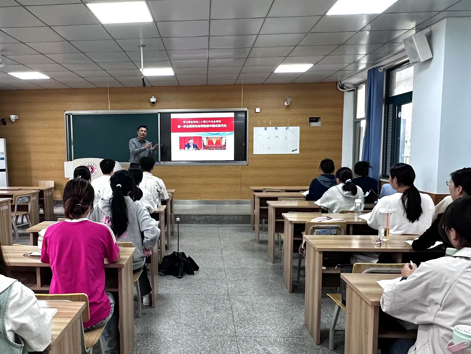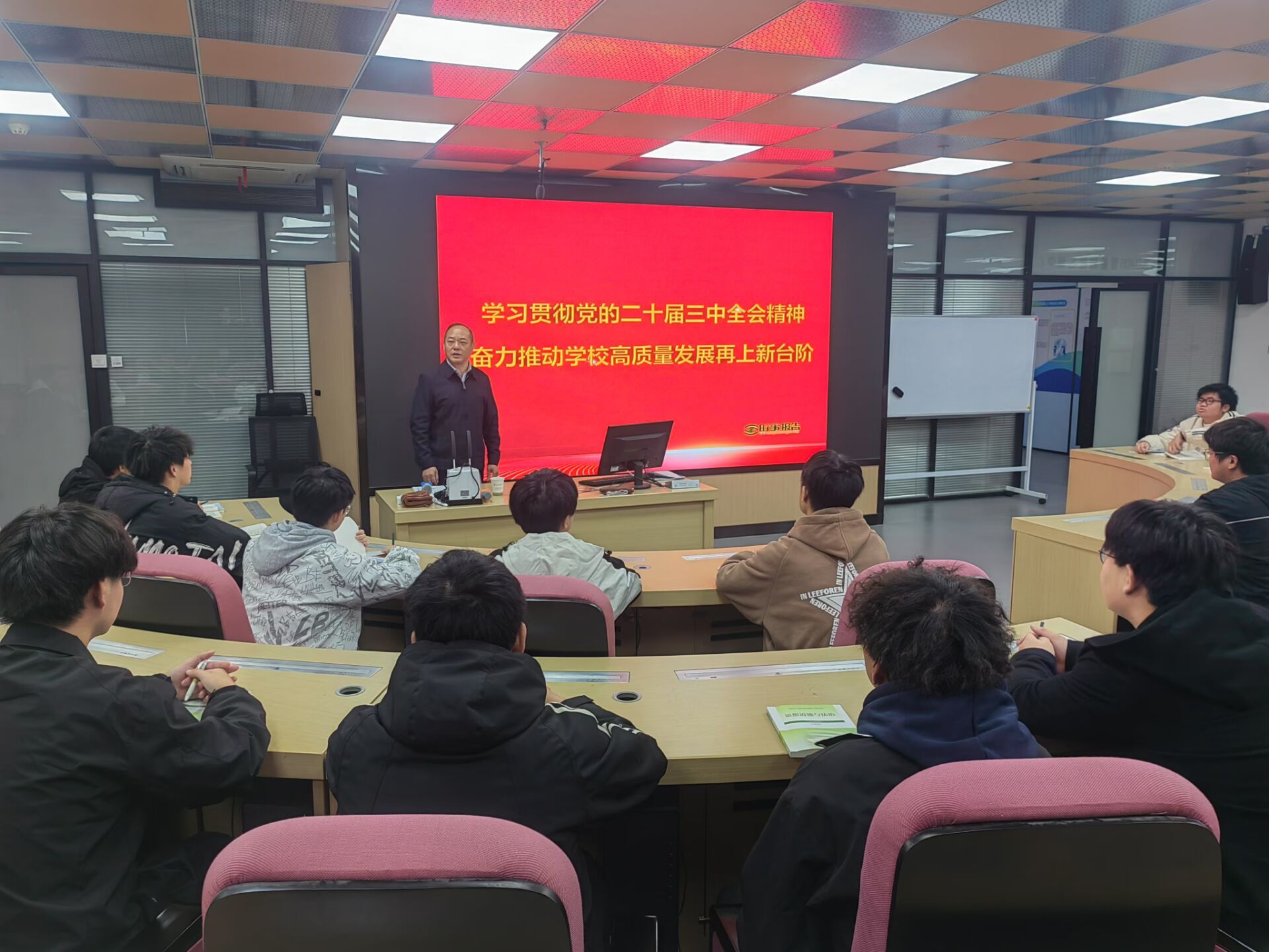 党委班子成员根据学生专业背景、所处学段循序渐进设计课程目标,结合校史校情、办学特色、专业优势等校本文化设计教学内容,以学生喜闻乐见的教学方式讲清“形势”、讲明“政策”,先后为学子们带去了“学习贯彻党的二十届三中全会精神”“七十五载迎盛世 砥砺前行续华章”“加快发展新质生产力”等专题内容。