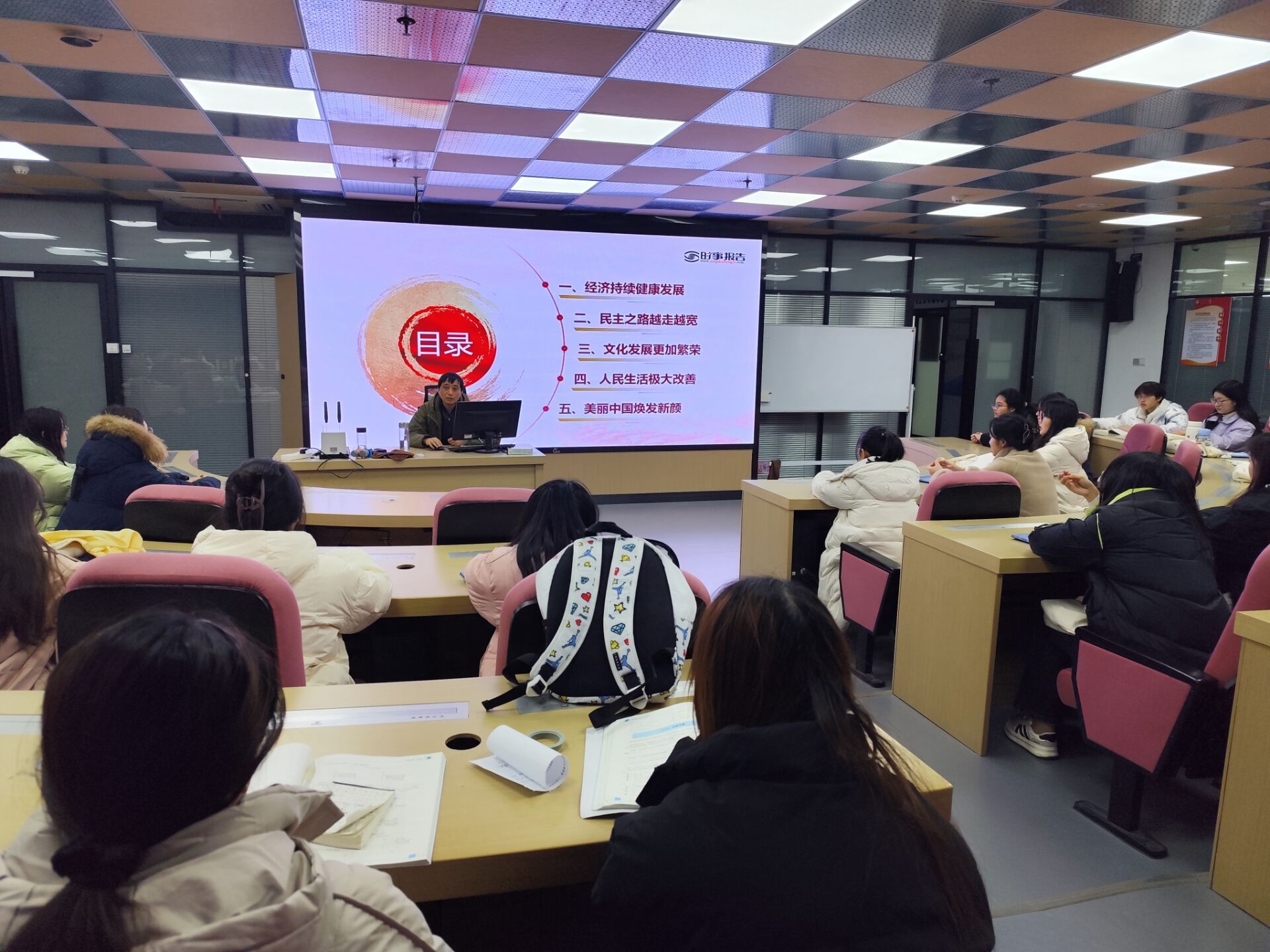 为深入学习贯彻习近平总书记对学校思政课建设作出的重要指示精神,持续推动习近平新时代中国特色社会主义思想进教材进课堂进头脑,夯实校党委直接领导思政课、亲手抓思政课的主体责任,校党委班子成员齐建平、陈行、胡捍东、陈章奇、吴松飞、刘浩、孔成等先后走进“形势与政策”课堂,以新时代伟大成就铸魂育人,守正创新推动思政课建设内涵式发展。