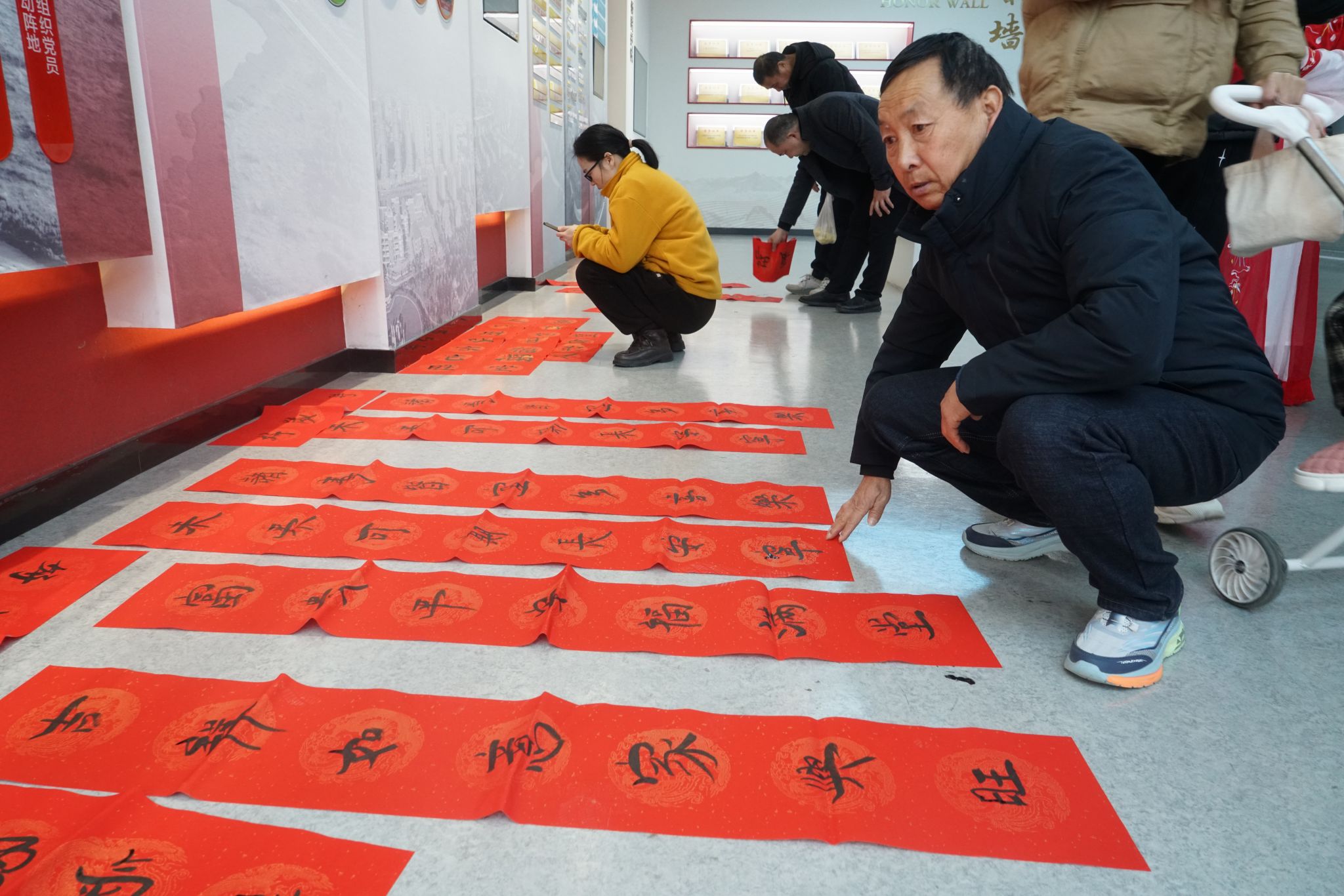 活动当日,峰宁社区党群服务中心人头攒动,热闹非凡,现场翰墨飘香、气氛热烈。书法爱好者们笔意洒脱、墨韵酣畅,一幅幅字体灵动、吉祥喜庆的新春对联挥洒而出,“一帆风顺年年好,万事如意步步高”、“蛇行天下财源广,福至人间好运来”,书写出辞旧迎新的美好愿景。志愿者们分工合作,相互配合,有的抻纸研墨,有的选配对联,引导社区居民有序挑选春联,大家脸上都洋溢着幸福的笑容,现场氛围其乐融融。