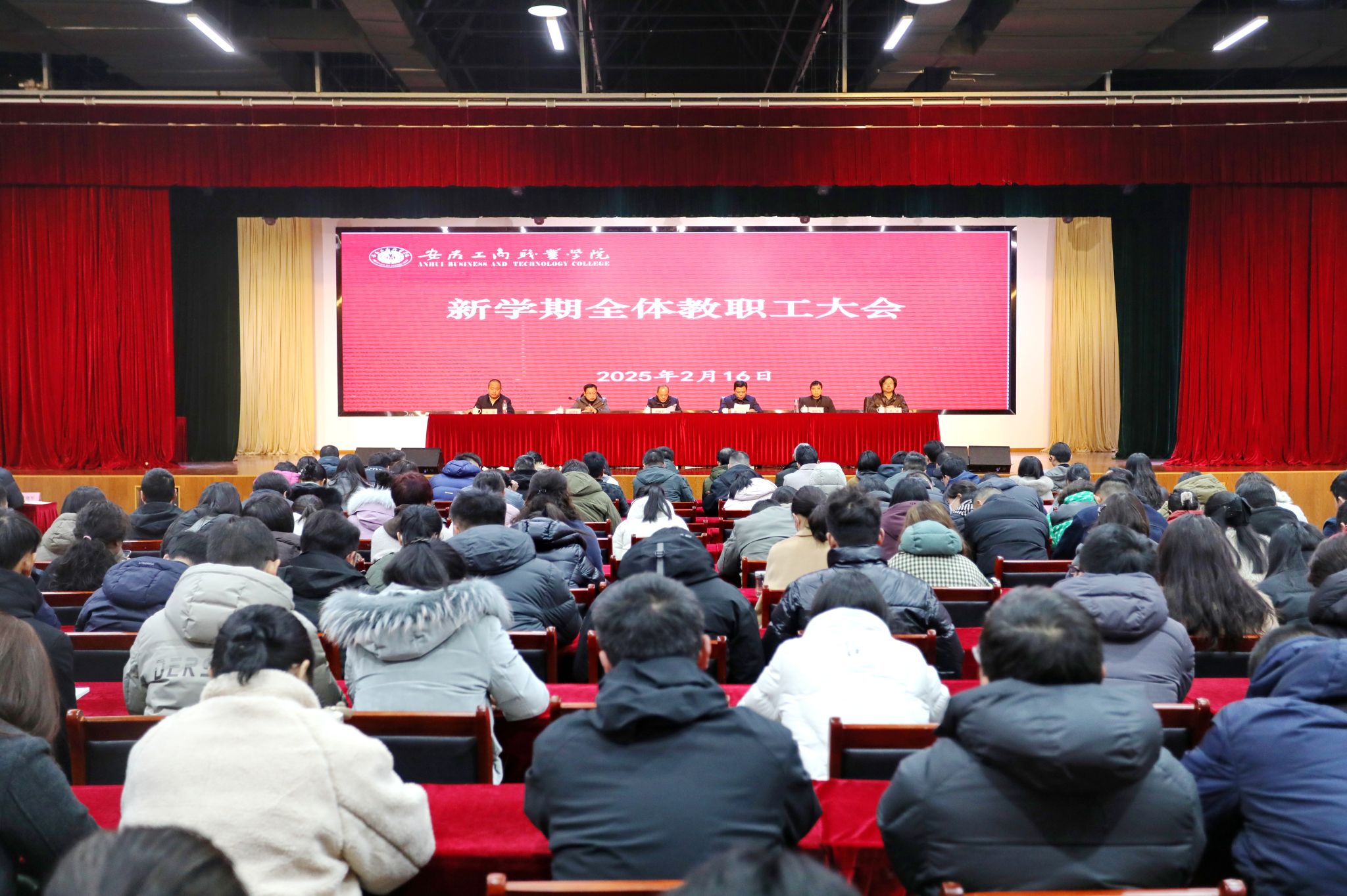 2月16日上午,学校召开2025年春季新学期全体教职工大会,贯彻落实全省教育工作会议精神,总结回顾2024年度学校工作,部署安排新学年工作任务。校领导班子成员齐建平、胡捍东、吴松飞、刘浩、孔成出席会议,党委副书记陈行主持会议。