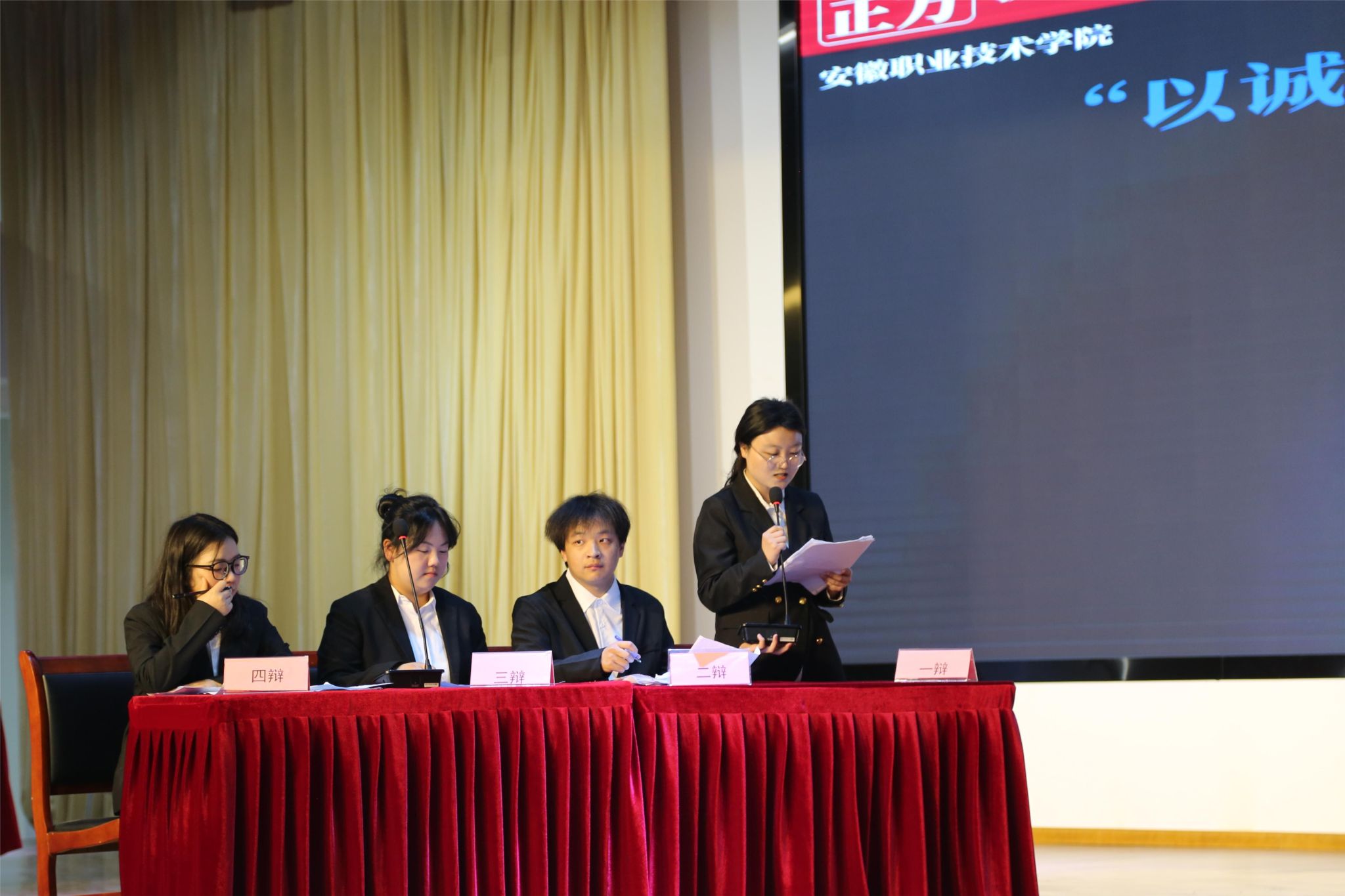 思辨交锋:唇枪舌剑话诚信。上午的八校联盟启动仪式结束后,安徽职业技术学院辩论队、安徽警官职业学院辩论队、安徽财贸职业学院辩论队、安徽城市管理职业学院辩论队、安徽审计职业学院辩论队、合肥幼儿师范高等专科学校辩论队、安徽广播影视职业技术学院辩论队以及安徽工商职业学院辩论队齐聚一堂,以语言为刃、以逻辑为盾,共话诚信之道,共绘青春友谊。活动全程贯穿“友谊第一,比赛第二”的理念,围绕诚信教育主题设置多元辩题,涵盖“诚信教育更需要道德层面的约束/法律层面的保障”、“教育评价体系应该更加重视学生的诚信记录/学术成绩”、“deepseek等语言类模型的爆火,随之出现AI造假论文等现象。由此可见,人工智能的迅猛发展对信用体系建设利大于弊/弊大于利”、“当代大学生的诚信理念树立,学校教育/社会实践更重要”等四组现实议题。全天八支队伍分四组展开对决,辩手们引经据典、妙语连珠,既有对社会热点的犀利剖析,也不乏对传统文化价值的深刻诠释。“这不仅是一场辩论赛,更是一次价值观的共鸣之旅。”校辩论协会会长周楷翔感慨道,“我们在交锋中看见差异,也在共识中收获成长。”