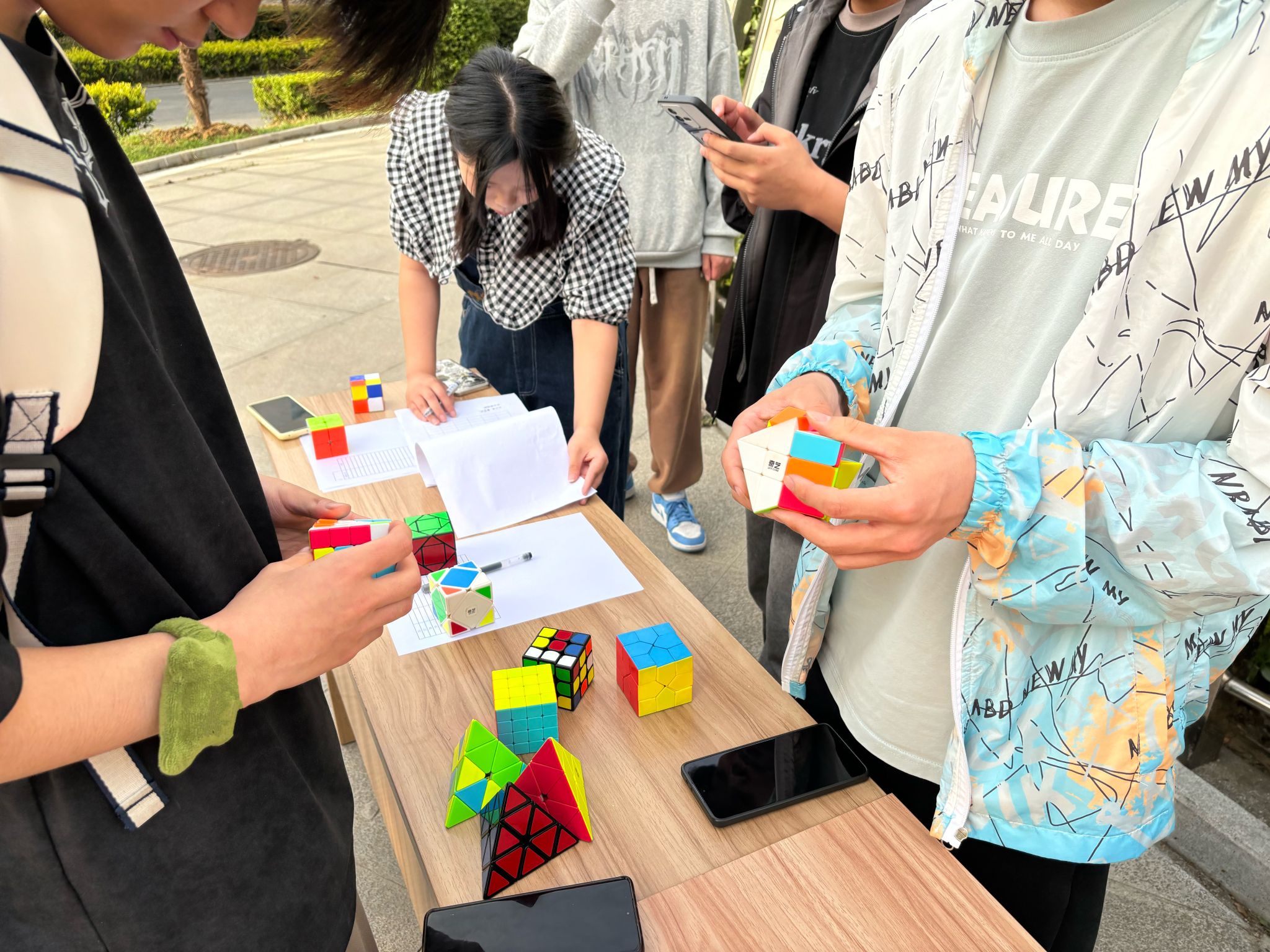 创意迸发:社团活动各显神通。蓝瑟动漫社以“徽章里的二次元世界”为主题,发起线上徽章设计大赛。参赛者巧妙融合动漫元素,百余份作品通过手绘、数字绘画等形式呈现,最终优秀作品将制成限量社团周边,成为学生珍藏的青春记忆;麦地话剧社社员们自编自导的短剧《青春独白》《时光信箱》等作品,通过幽默与温情交织的剧情,探讨成长、亲情与理想,引发观众共鸣;在智趣与手速的较量中,魔方爱好者协会开启“指尖争锋”挑战赛。参赛选手在二阶、三阶及异形魔方项目中展开激烈角逐,最快还原记录屡屡刷新;音乐协会“春日音浪”小型音乐会在田径场激情奏响。多元曲风轮番上演,从古典雅韵到现代流行,一首首耳熟能详的歌曲唤醒了大家对音乐的热爱与向往。