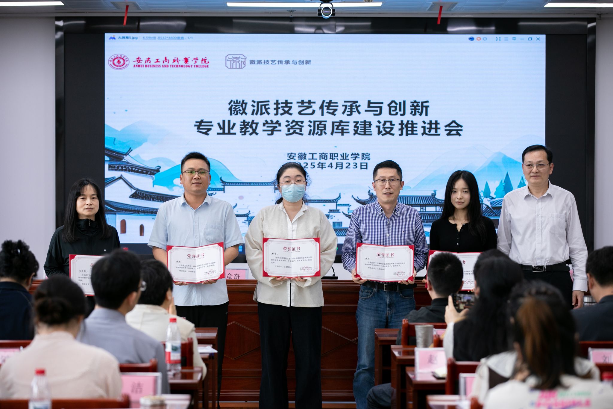 4月23日下午,徽派技艺传承与创新专业教学资源库建设培训推进会在安徽工商职业学院双凤校区顺利召开。安徽工商职业学院党委委员、副院长陈章奇,合肥职业技术学院办公室主任窦红平,安徽机电职业技术学院艺术设计学院院长陈旺等牵头单位负责人,以及9个子项目负责人、54门课程负责人出席会议。重庆电力高等专科学校伍家洁教授受邀远程参会并作专题指导。会议由艺术设计学院院长魏芬主持。