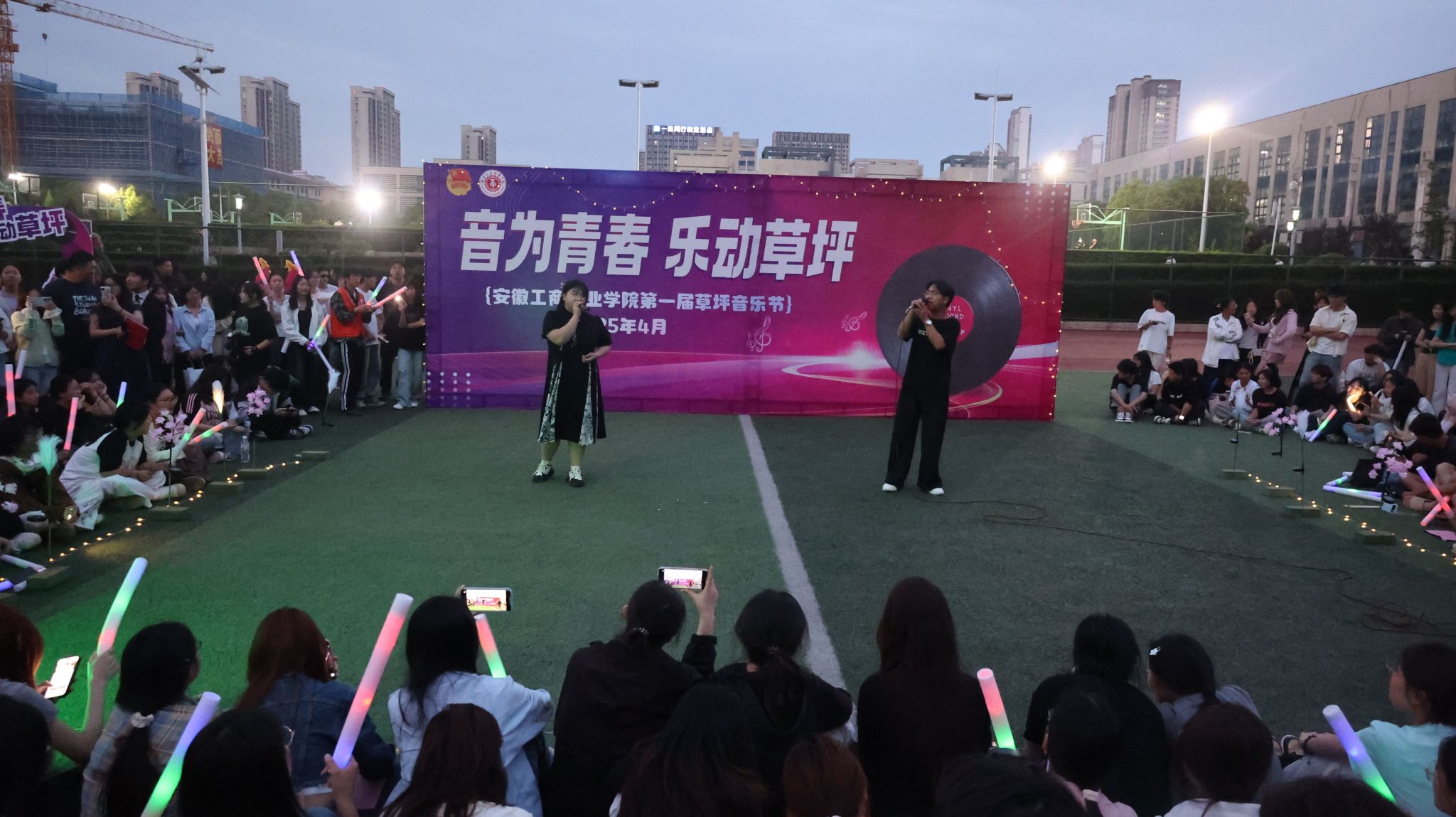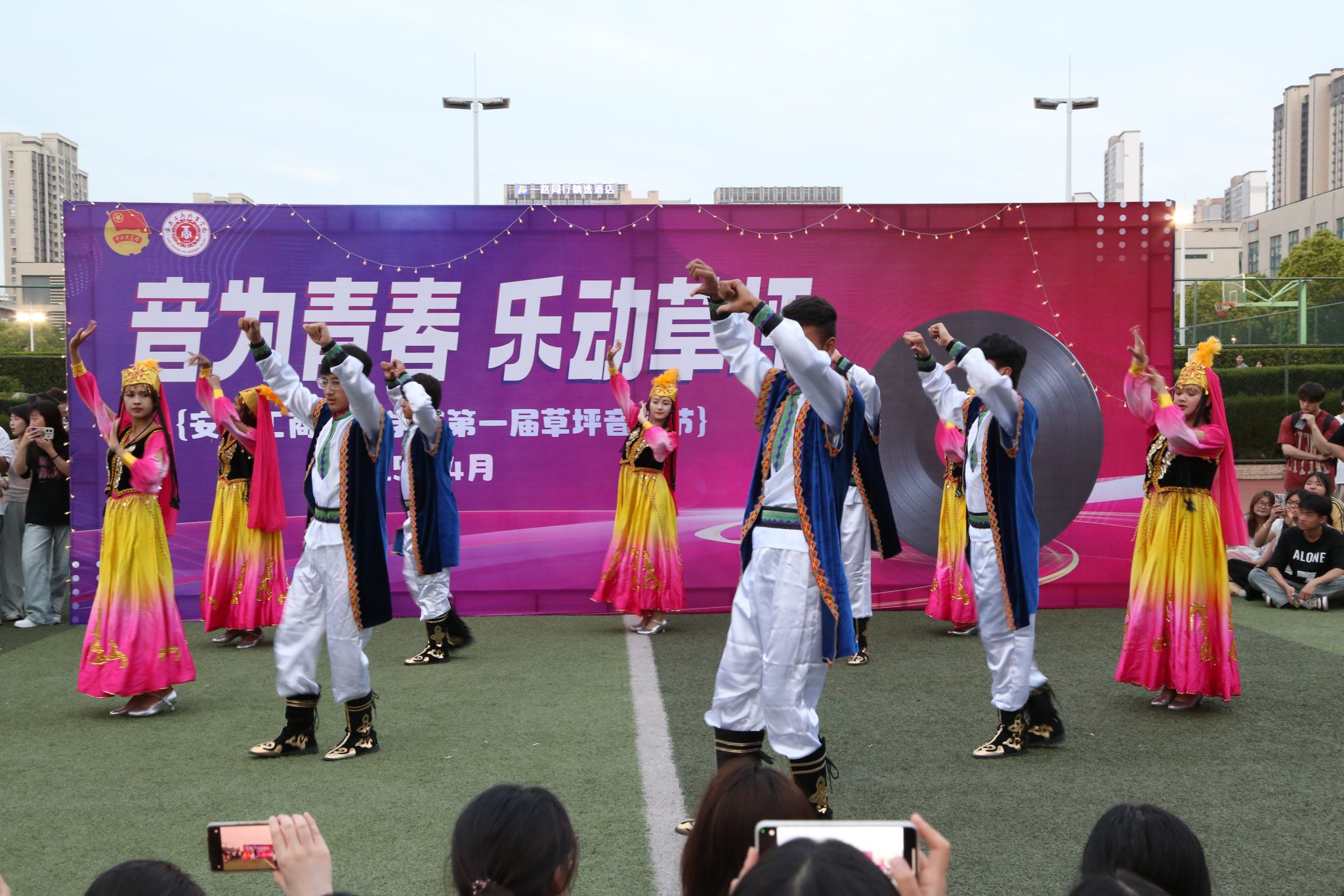 碧茵如染,清风绕襟。为落实“时代新人铸魂工程”,丰富同学们的课余生活,营造良好的校园文化氛围,4月25日晚六时,由校团委、校大学生社团管理部联合主办的草坪音乐节在田径场盛大开幕。活动以“音为青春 乐动草坪”为主题,集结20余个学生社团倾力打造,吸引千余名师生齐聚绿茵场,共同见证了一场融合音乐、舞蹈、武术与创意的视听盛宴。