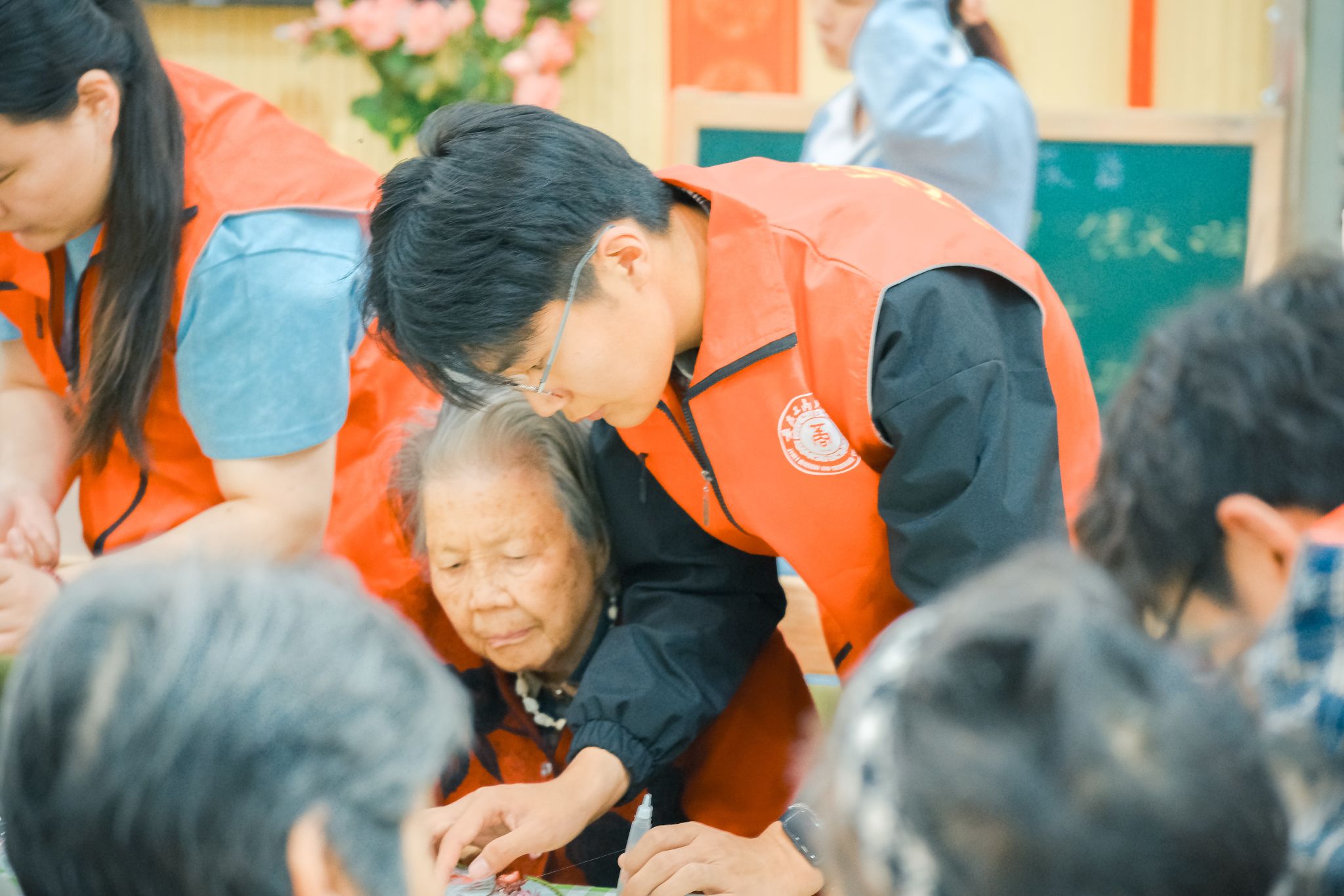 歌声渐歇,一场别开生面的团扇DIY活动随即展开。志愿者们提前准备了空白团扇、干花、装饰带、彩绘颜料等材料,耐心讲解制作步骤。老人们兴致盎然,在志愿者的协助下,将花瓣、枝叶精心粘贴于扇面,或用画笔勾勒出荷花、青松等寓意吉祥的图案。活动期间,志愿者们分组陪老人聊天、修剪指甲、整理房间。听抗战老兵讲述烽火岁月,陪“老教师”回忆执教生涯,为卧床老人读报按摩……点滴细节中传递着跨越年龄的温情。