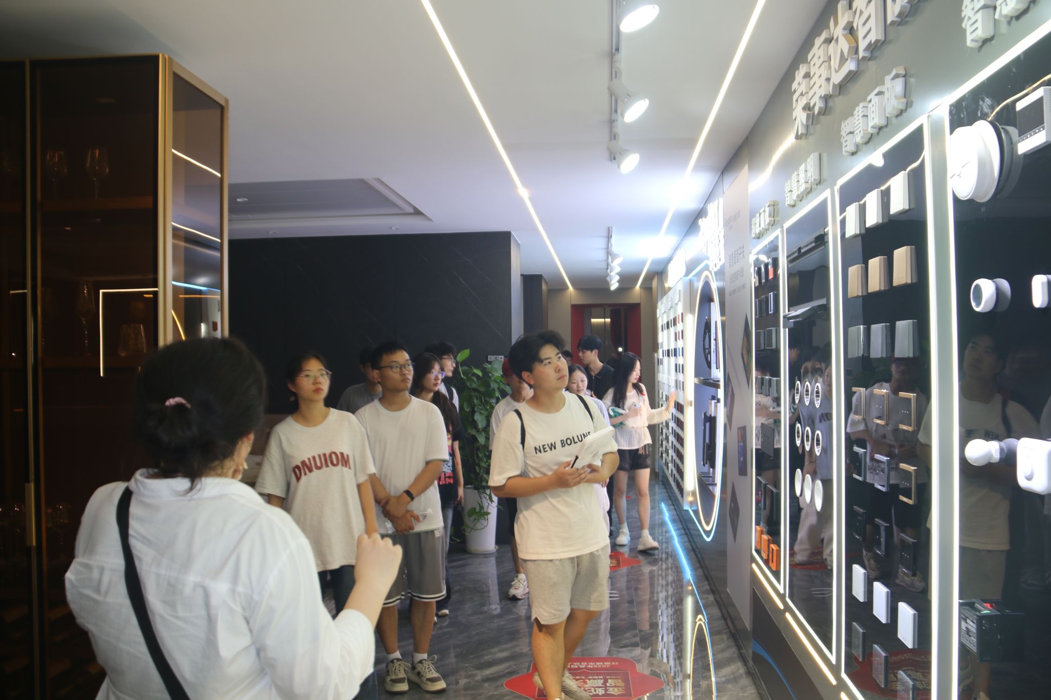 探秘智能家居,触摸未来生活。在智能家居全屋场景体验中心,师生们跟随讲解员的引导,深入了解了智能家居领域的创新应用场景。展厅内,通过物联网技术实现全屋联动的智能家电、语音控制的家居系统、节能环保的新能源解决方案等产品,生动展现了科技对生活品质的提升。同学们还亲身体验了“一键式”智能场景切换,感受从居家娱乐到安全防护的智慧化服务。