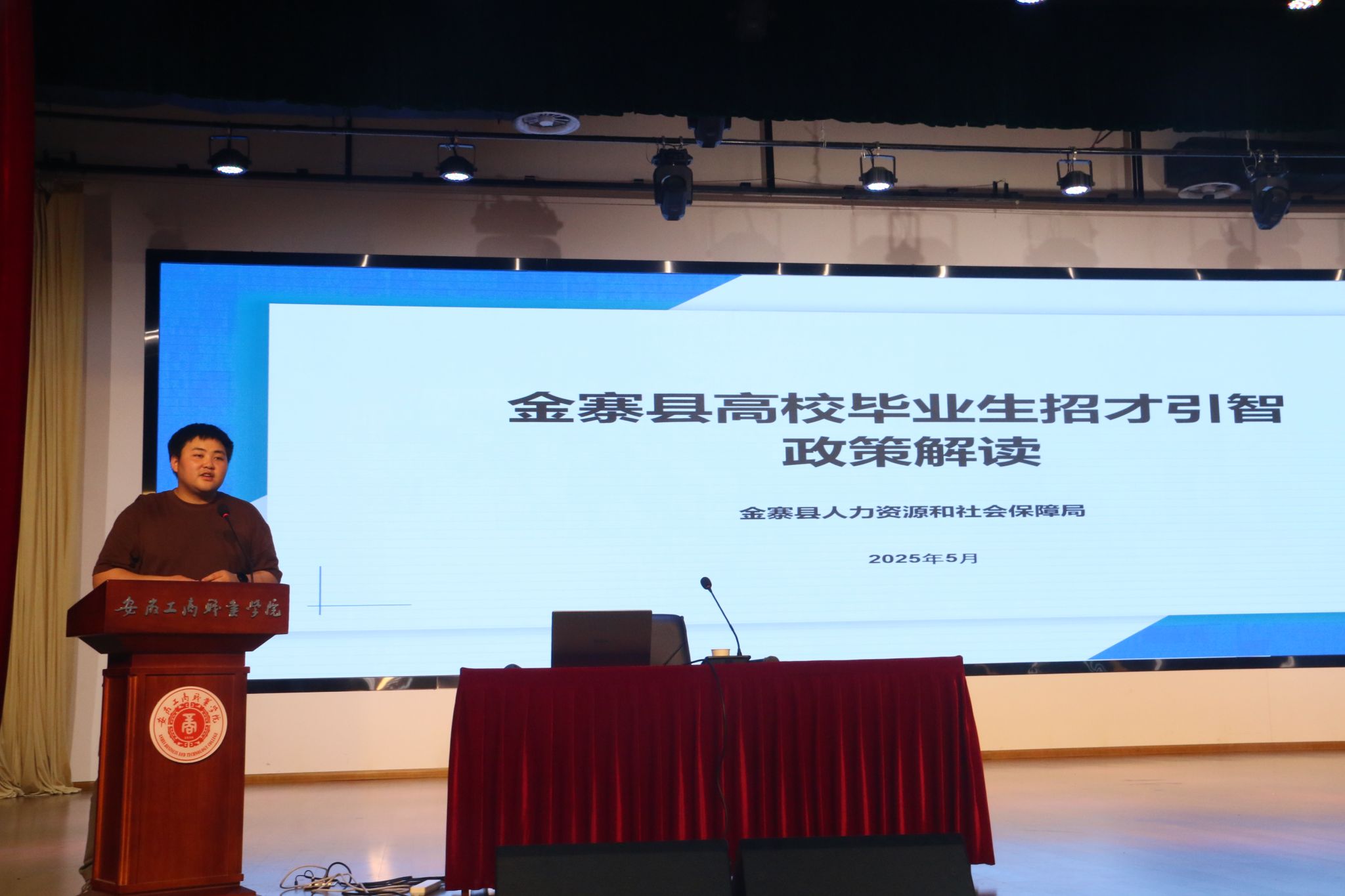 宣讲会上,金寨县文旅局、农业局、人社局的工作人员分别介绍了金寨旅游资源、乡村振兴成果及大学生就业创业政策;安徽农耕年华农业发展有限公司总经理王汉青介绍了“我把金寨带回家”品牌、产品种植生产工艺、农产品电商销售策略技巧;大赛组委会负责老师则对赛事规则、参与方式、各阶段注意事项等内容进行了详细解读。互动答疑环节,与会师生围绕选品策略、数据支持、助农难点等参赛过程中遇到的问题与工作人员进行了详细交流,现场气氛热烈。