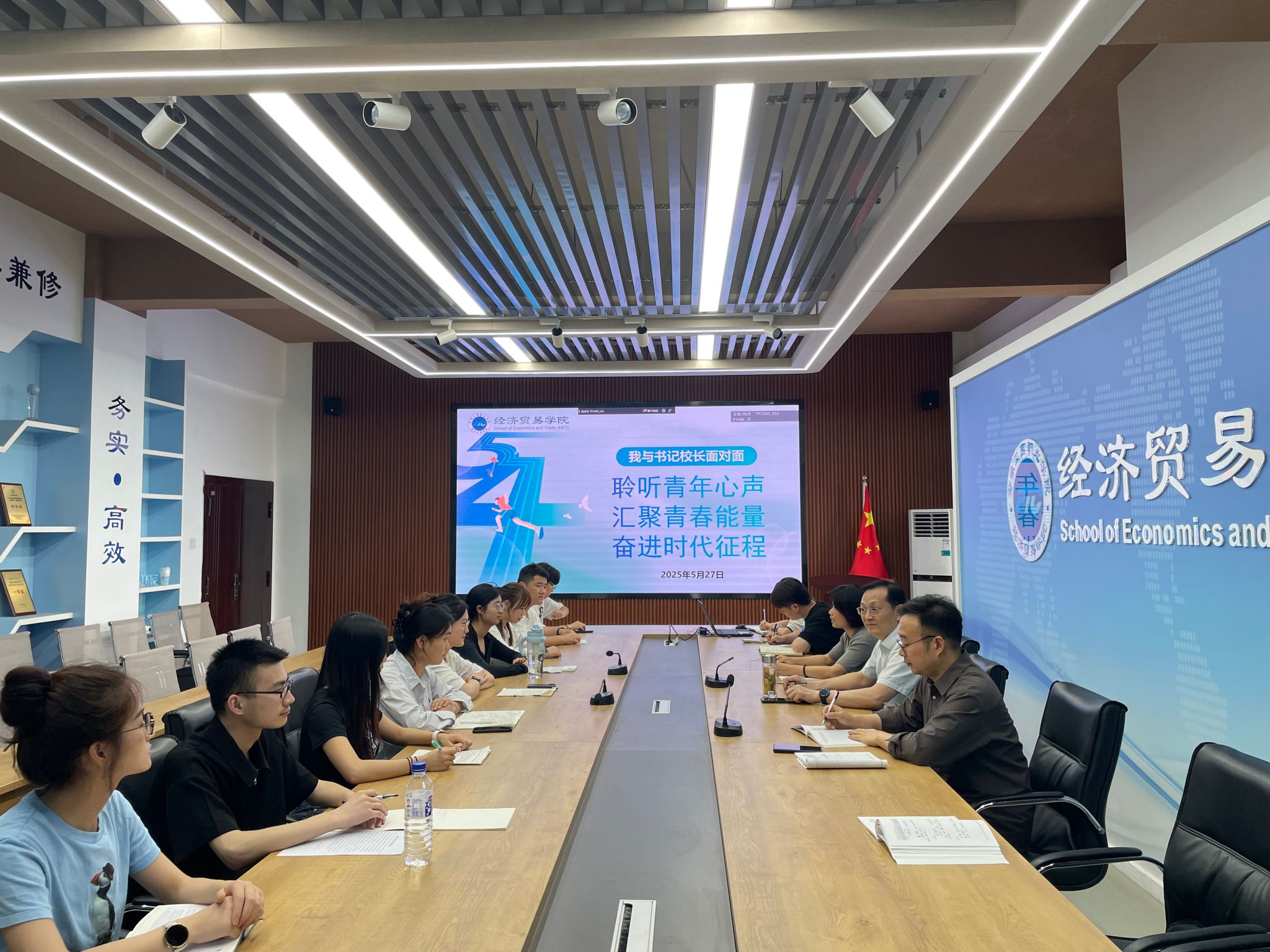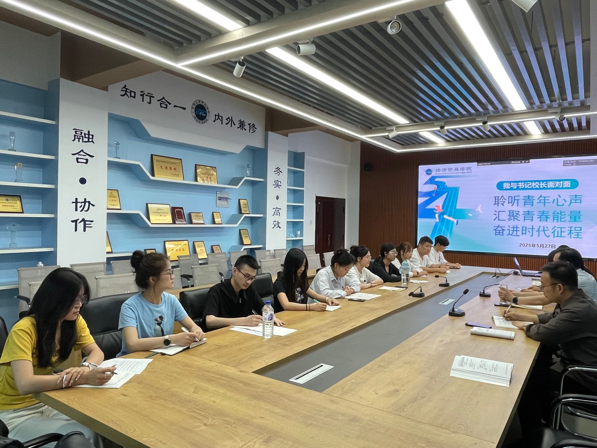 座谈会以“聆听青年心声,汇聚青春能量,奋进时代征程”为主题,氛围轻松活跃,与会学生代表畅所欲言,主要围绕思想成长、课程学习与实践拓展、技能大赛、升学就业计划等方面做了学情汇报。大家表示进入经济贸易学院学习以来,收获颇丰,成长迅速,高度评价学院优质软硬件实训条件。同时学生代表对校园环境、生活设施、课程教学等方面提出了中肯的建议。与会人员对学生代表提出的意见建议做了详细记录与解答。