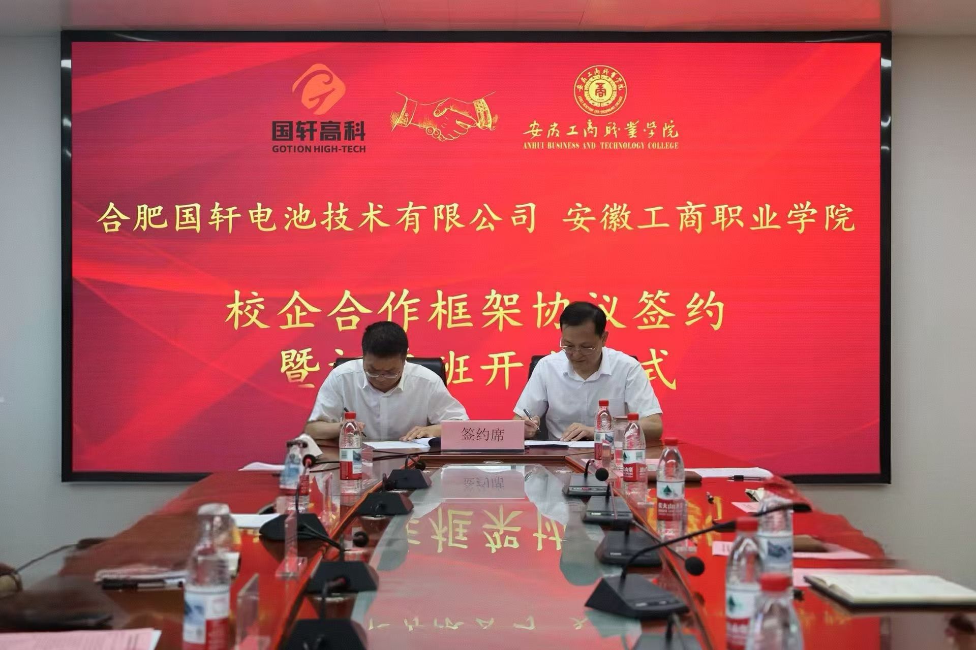 在校企双方领导和师生的共同见证下,安徽工商职业学院与合肥国轩电池技术有限公司正式签署了“校企合作订单班”框架协议书,标志着双方在产教融合、协同育人方面迈入新阶段。