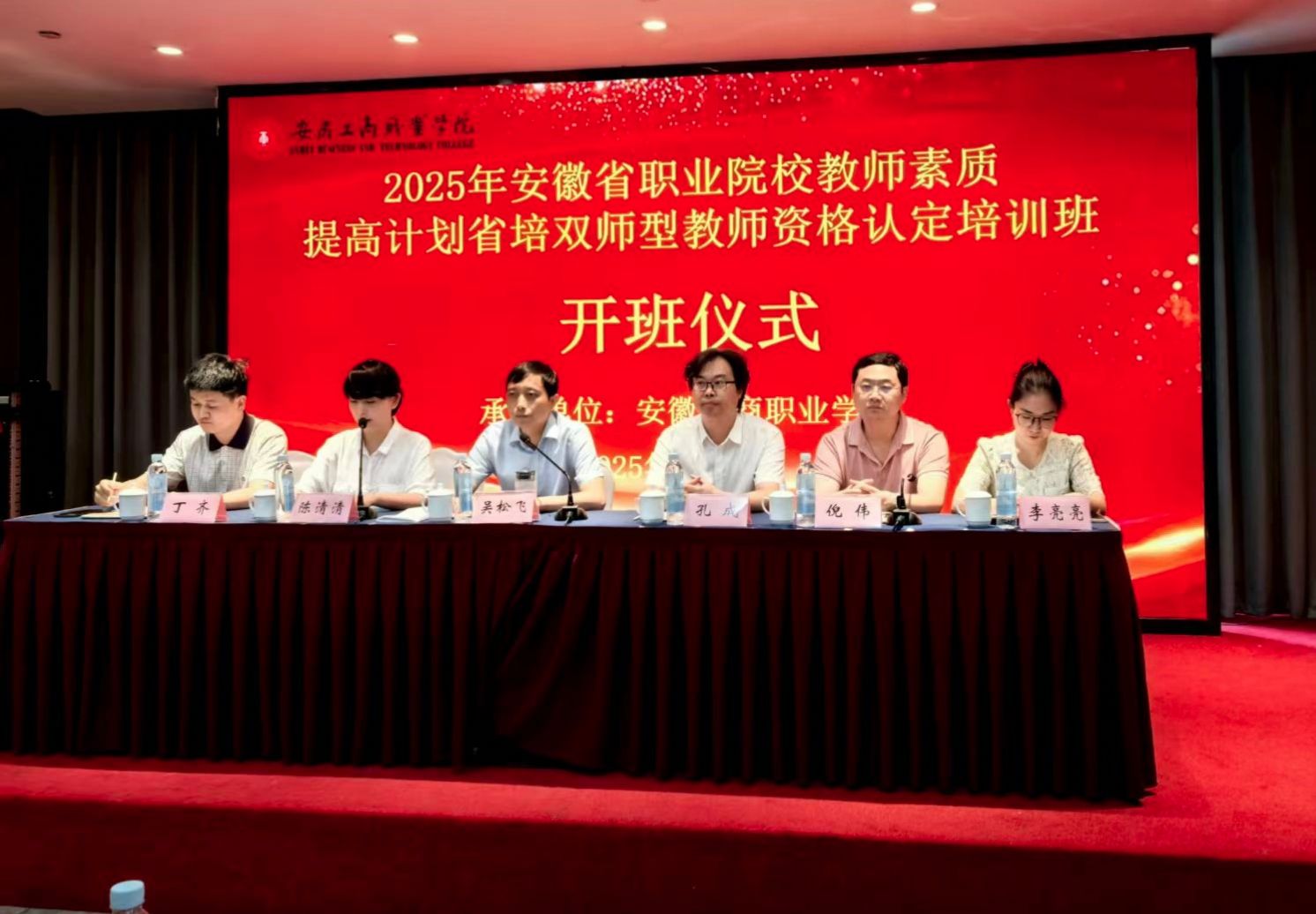 2025年7月19日,由安徽省教育厅主办、安徽工商职业学院承办的中等职业学校“双师型”教师资格认定专项培训项目顺利启动。安徽工商职业学院党委委员、纪委书记吴松飞,党委委员、党委宣传统战部部长孔成,管理学院副院长倪伟,国际交流与继续教育学院副院长陈清清及相关工作人员,以及来自全省各地市教育主管部门和中职院校的60名学员共同出席了开班仪式。