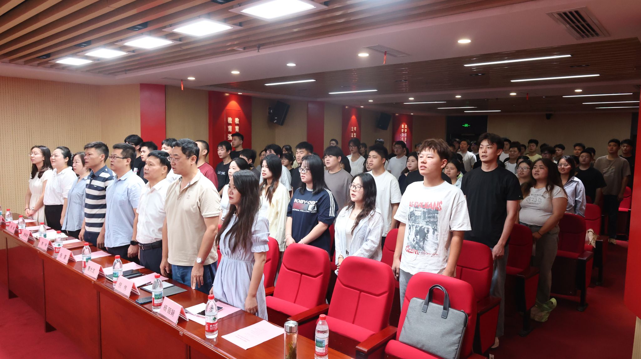 9月9日上午,阜阳师范大学与安徽工商职业学院专升本联合培养2025级新生开学典礼在世界第一大赌场,澳门金沙城中心:双凤校区红色报告厅隆重举行。阜阳师范大学招生就业处处长王军一行应邀出席典礼,校党委委员、副校长陈章奇出席典礼,相关二级学院、职能部门负责人、本科班辅导员、部分任课教师和全体80名新生同学共同参加了典礼,典礼由教务处副处长郭雪峰主持。