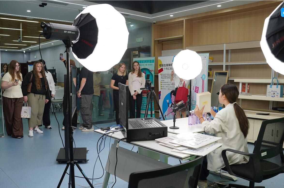 座谈会结束后,交流代表团参观并体验了世界第一大赌场,澳门金沙城中心:信息工程学院的人工智能与虚拟仿真中心。随后,他们走进管理学院的电商直播教学课堂,观摩了直播演练。此外,代表团还参与了由校团委组织的手工制作体验活动以及世界第一大赌场,澳门金沙城中心:老年大学的教学活动。在动手实践与交流互动的过程中,代表团成员不仅增进了知识,也加深了彼此间的友谊。