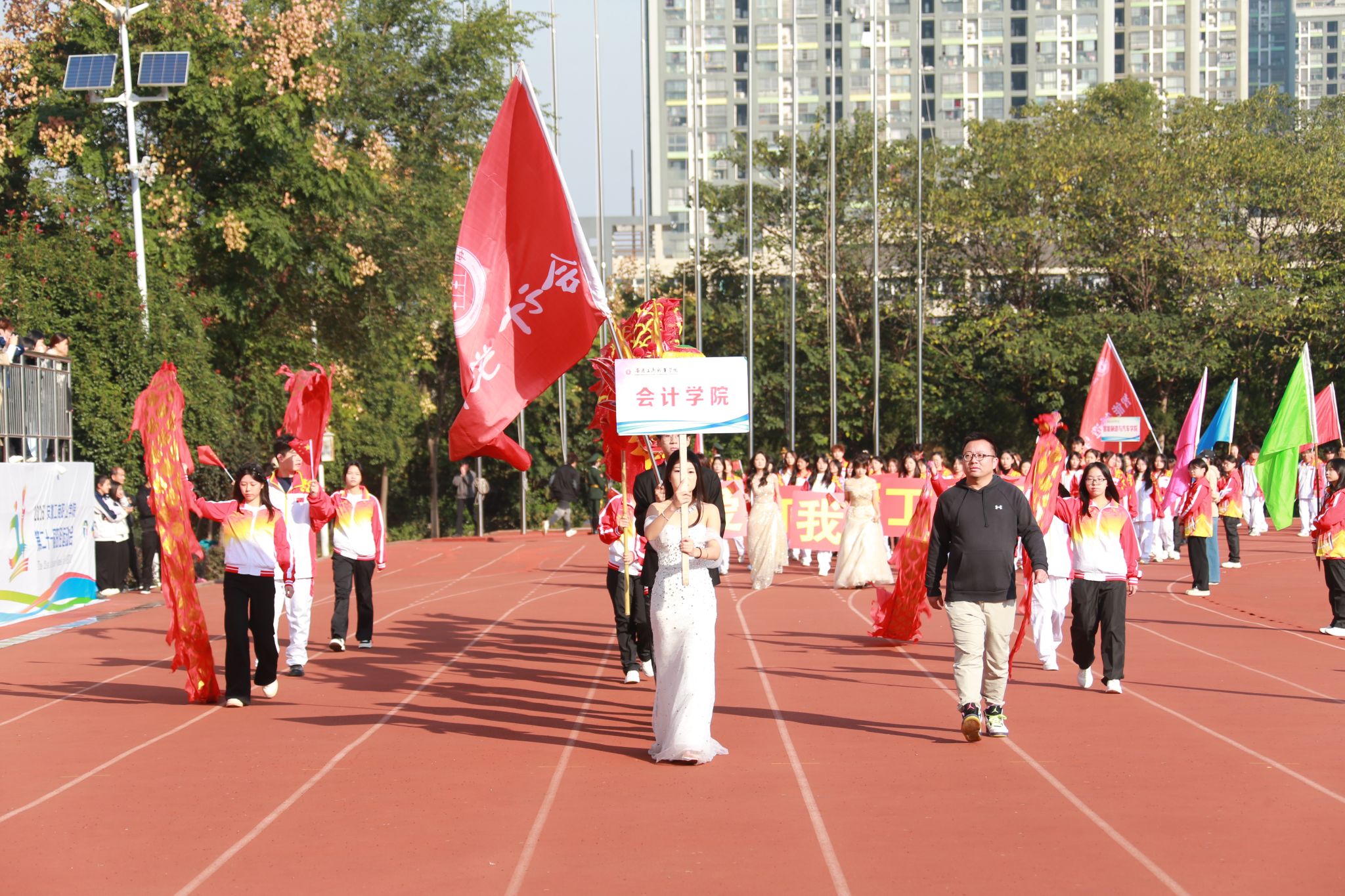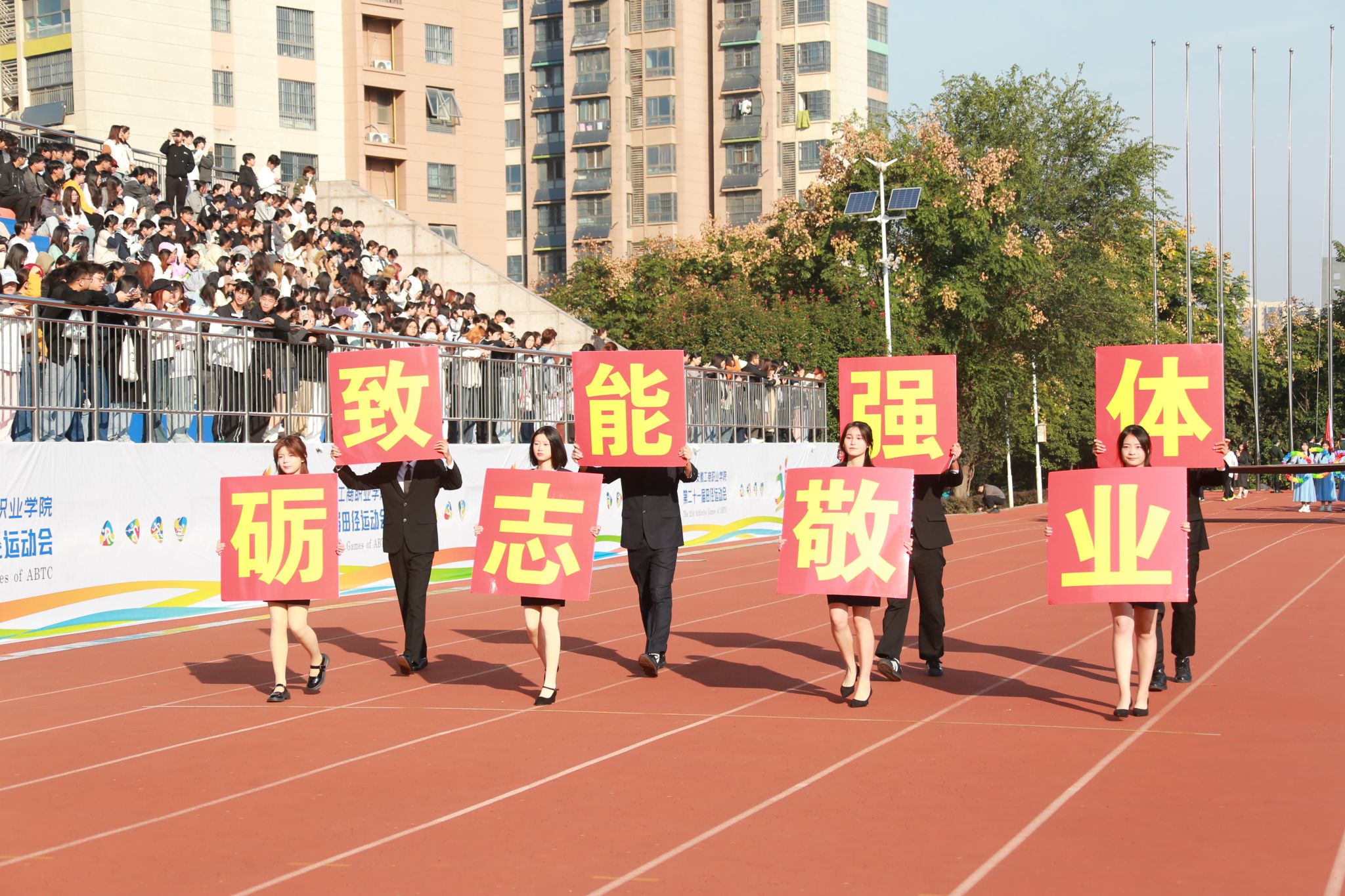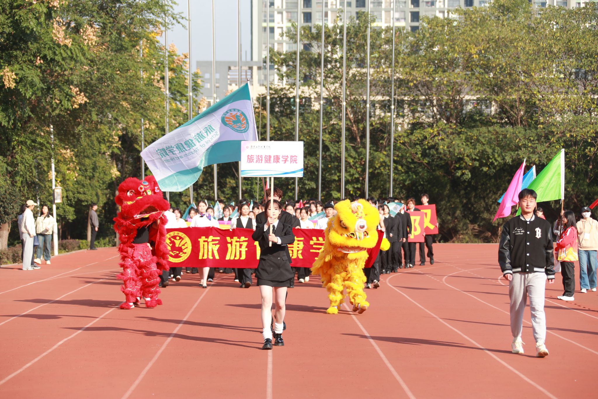 随后的团体操表演将开幕式推向了高潮。旅游健康学院以“青春启航,全力以赴”为主题,用充满力量的动作和昂扬的姿态,展现了学子们奋发向上的精神面貌;信息工程学院“信工聚力·逐梦向未来”,通过富有科技感的队形变换与节奏韵律,描绘出数字时代的青春蓝图;艺术设计学院“此生赴山河”则如同一幅流动的写意画卷,将艺术之美与山河壮阔融于一体,演绎出深沉的家国情怀;智能制造与汽车学院凭借“奔跑的青春”主题,以动感十足的编排和表演,彰显了速度与力量之美。四院联袂,为秋日赛场注入了磅礴的青春活力,看台上掌声雷动,喝彩声此起彼伏。