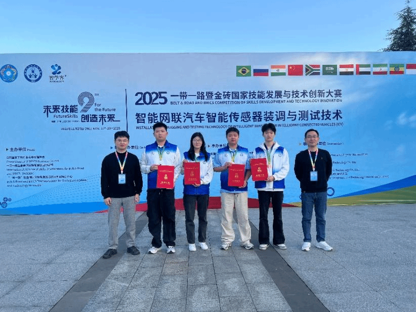 智能制造与汽车学院聚焦智能网联新能源汽车智能制造领域,由胡世平、徐慧敏和张涛三位老师指导的学生余孟泽、宫馨怡、于若晗,首次参赛就在第二届新能源汽车驱动电机及控制技术赛项全国总决赛中分别获得金、银、铜三项大奖。由吴风波、夏志远两位教师指导学生王金玲、凌浩楠在“智能网联汽车智能传感器装调与测试技术”赛中获得全国二等奖;指导学生李名扬、徐旌师获得全国三等奖的好成绩。在“人工智能机器人系统集成及应用”赛项总决赛中,张春芳、曹子沛两位教师携参赛学生曹荣、薛景瑞最终获得二等奖的好成绩。