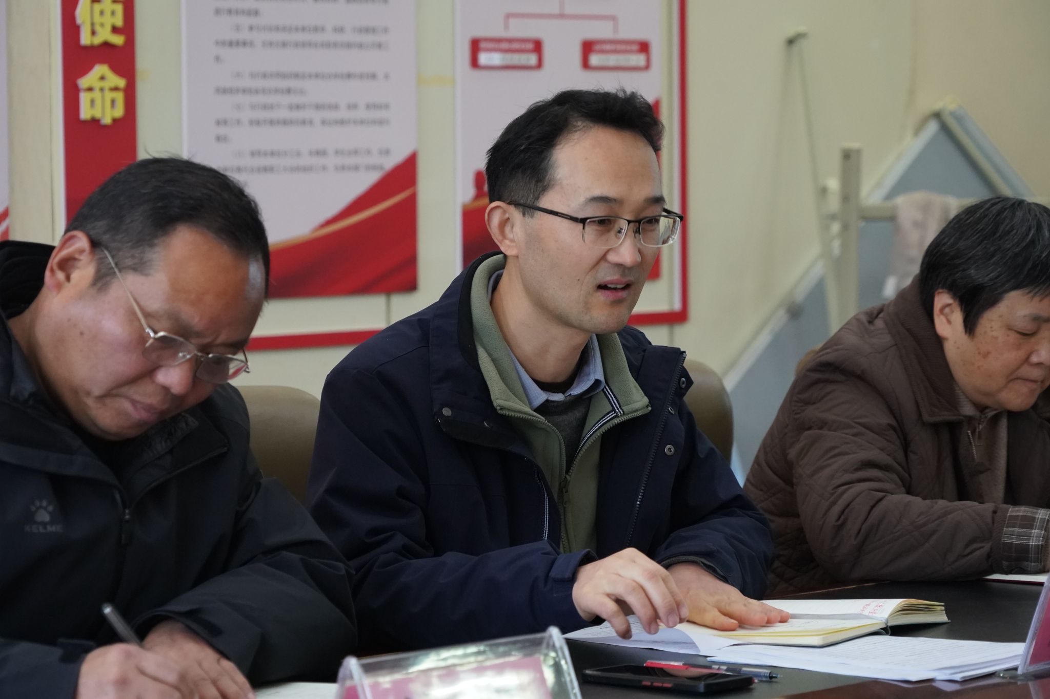在交流发言环节,与会同志紧扣主题,立足岗位谈感悟、结合职责谋落实。党总支书记葛成飞以“深学细悟强作风 严管实干勇担当”为题,重点阐述了将自我革命精神深度融入教育教学工作的路径与使命担当;吕涛同志围绕“以‘五个进一步到位’为指引 筑牢思政堡垒 践行组织员职责”分享了基层党建工作的实践思考与承诺;严瑞同志聚焦“学习贯彻落实党的自我革命精神”,提出了立足岗位强化责任担当的具体举措。发言既有理论高度,又有实践深度,展现了马院党总支勤学笃行、求真务实的良好作风。